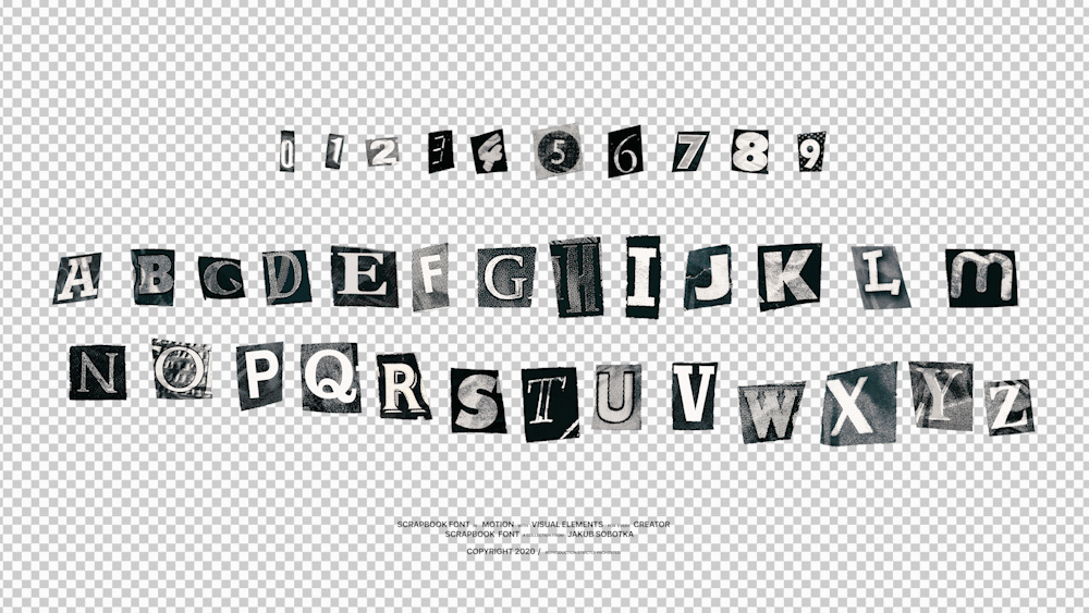 经过几个月的研究,编辑信函和发表工作,终于到了!全新的Scrapbook动态字体-具有高达4K分辨率的惊人重复效果。信件直接取自报纸和杂志。