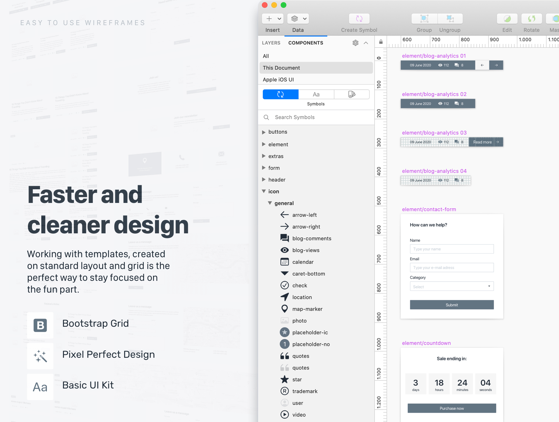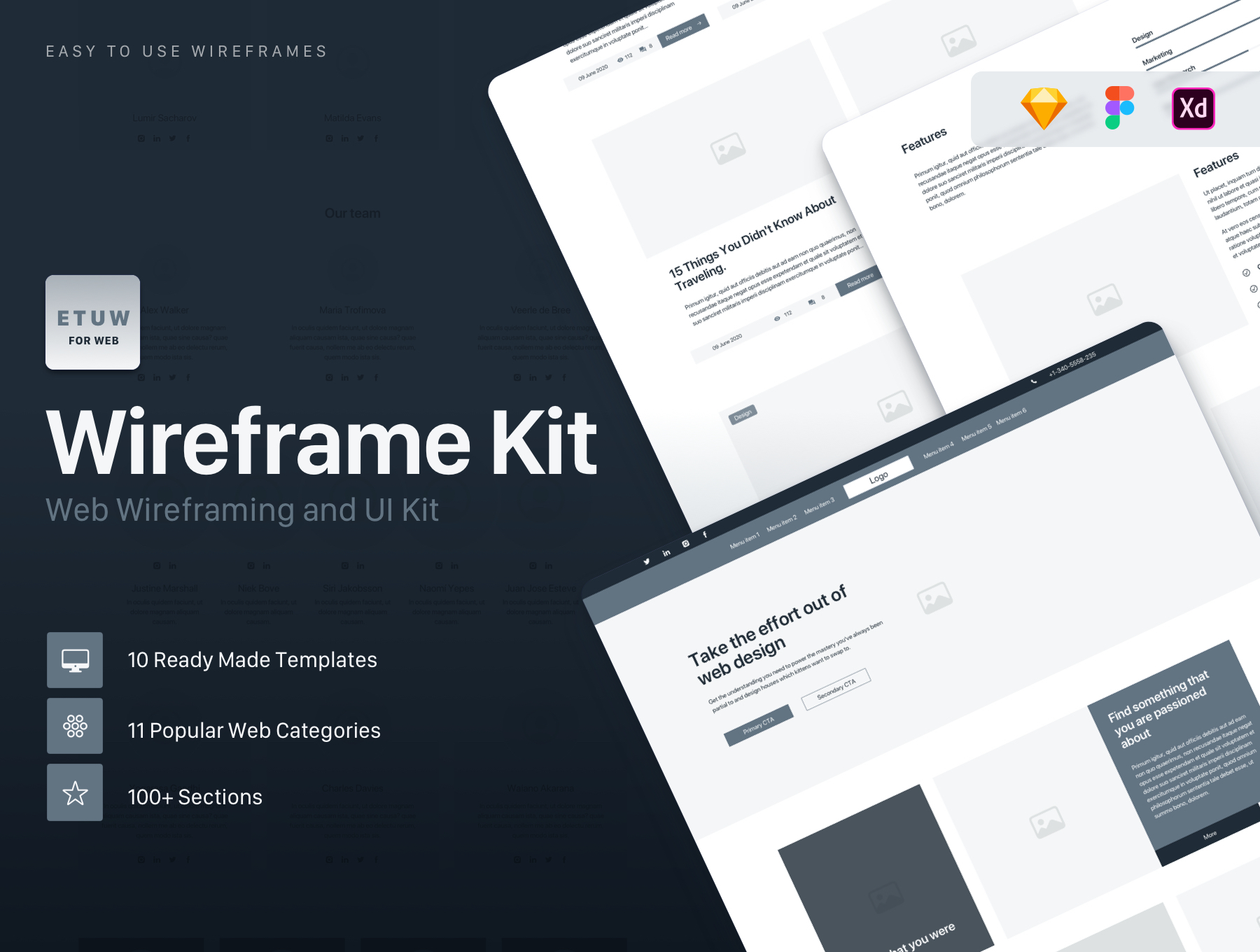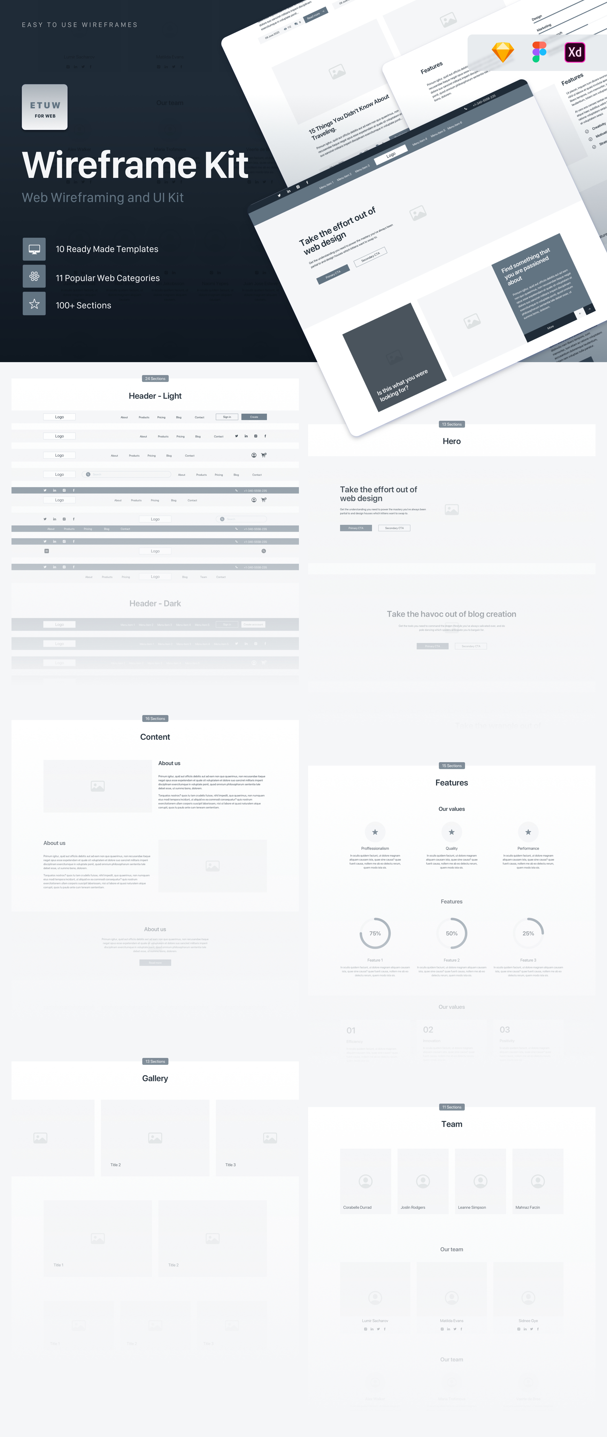 ETUW:易于使用的Wireframe是一个干净的Web套件,在标准的Bootstrap系统-12列上创建| 1440px宽度| 8pt网格。所有符号和对象都是基于矢量的,易于编辑。