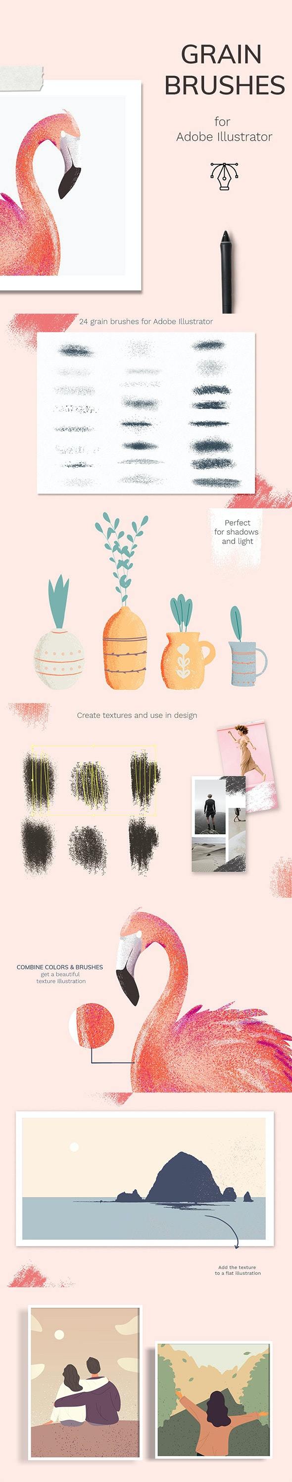 您将为Adobe Illustrator获得24个矢量纹理和纹理画笔