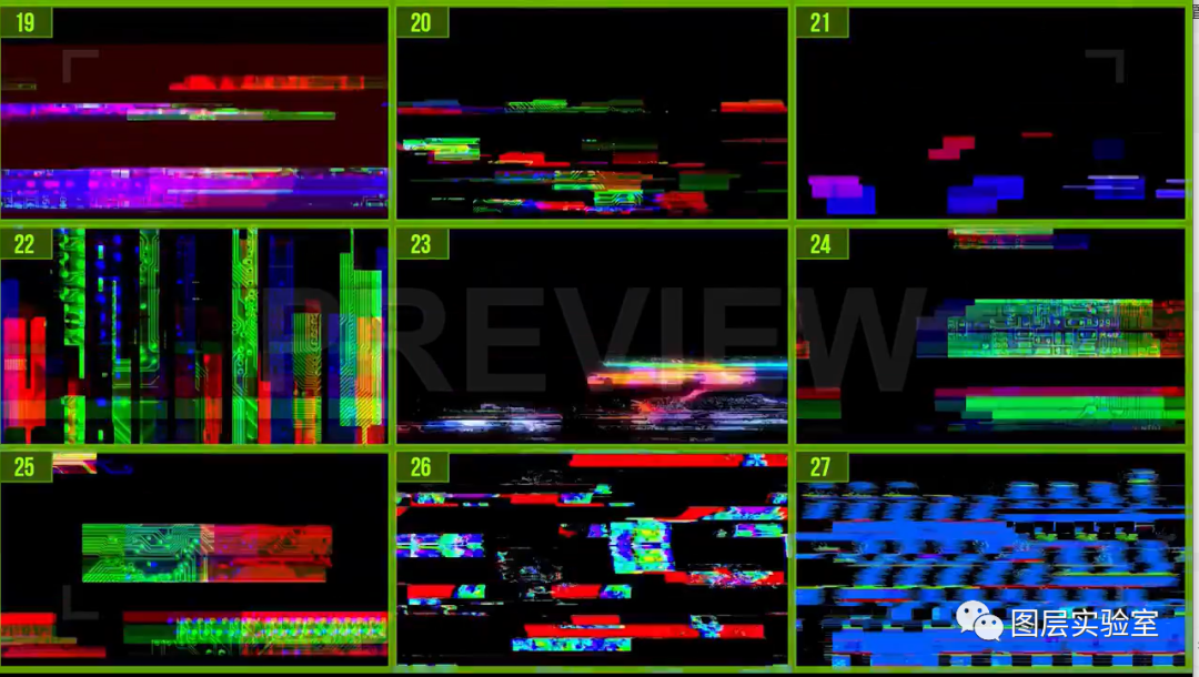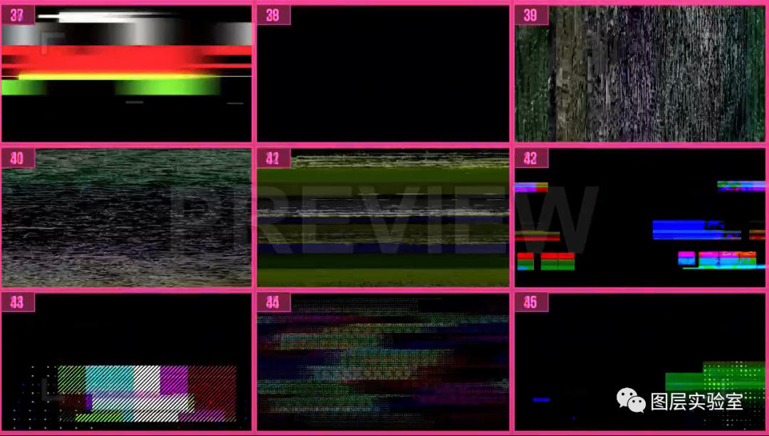 该股票运动图形视频包包括100种不同的短毛刺效果,可以将其组合以获得更多变化。使用混合模式覆盖片段,以创建故障,噪声或系统错误过渡。