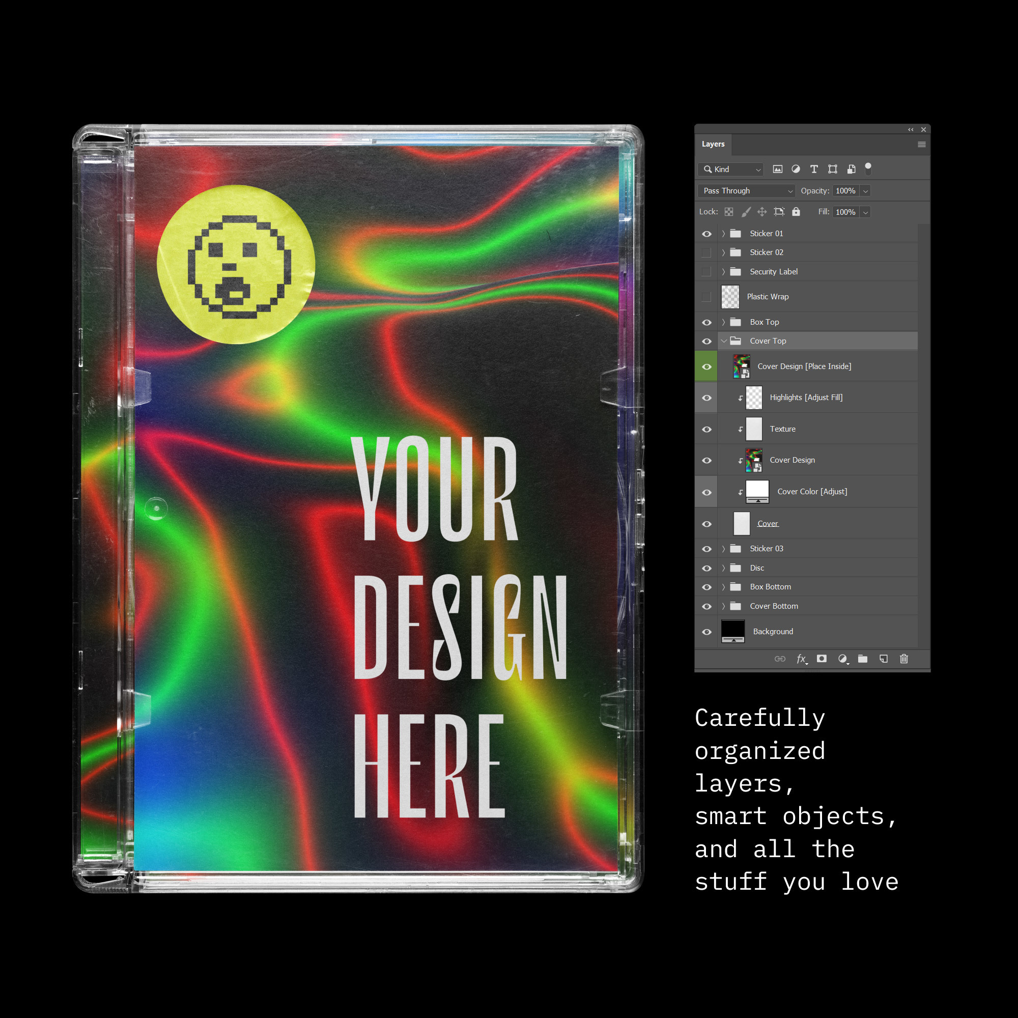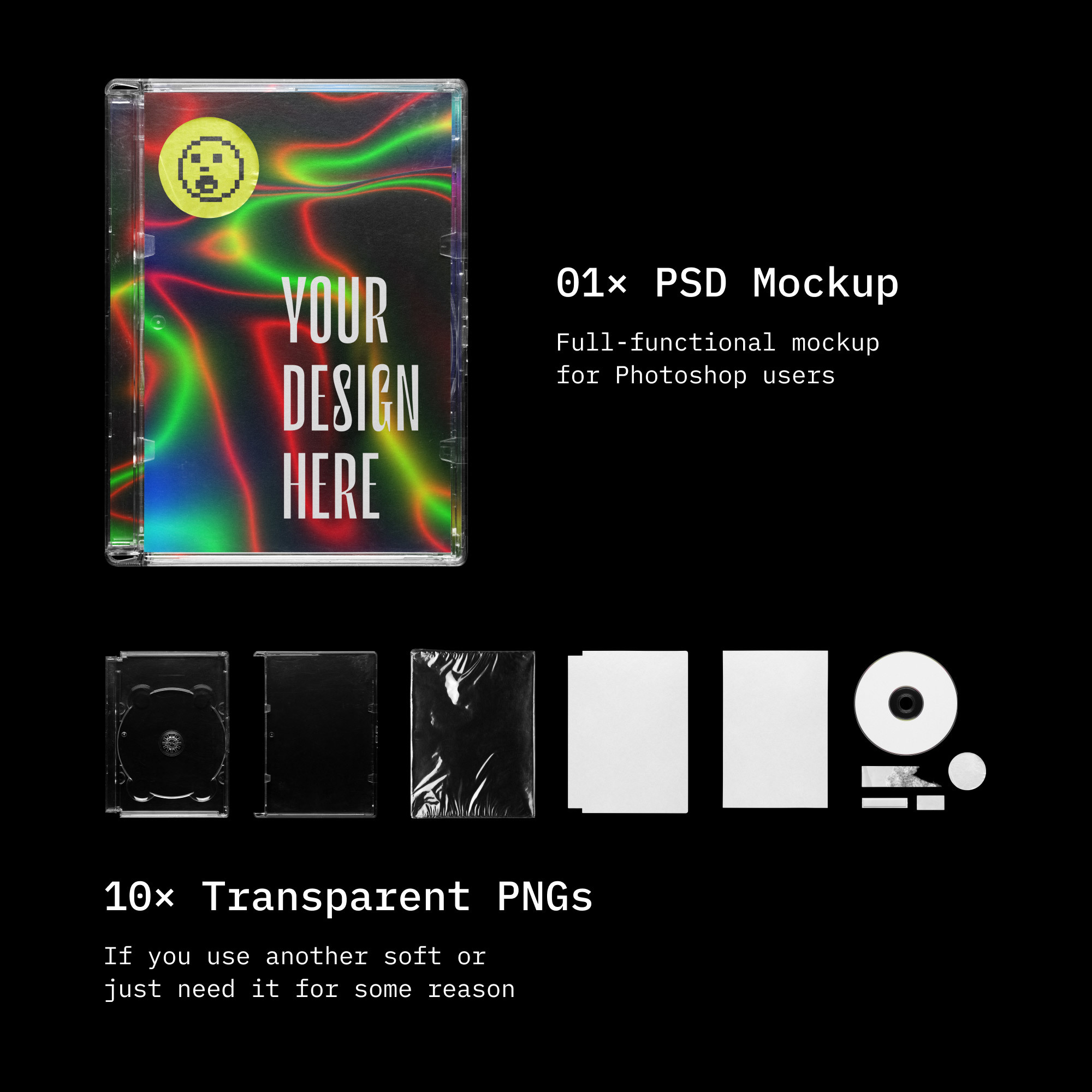 带有光盘样机的珠宝盒:酷炫的真实外观,高分辨率,高品质和真正的定制功能色调。您可以自定义作品并将其添加到顶盖,底盖,光盘,三个不同的标签和安全标签。每个元素都是可切换的,甚至是顶盖。提供两种形式的模型:.psd(具有智能对象和完全自定义功能的全功能模型-适用于Photoshop用户)和.png(透明图像-适用于使用替代图形软件的用户)。这不是宝石吗?