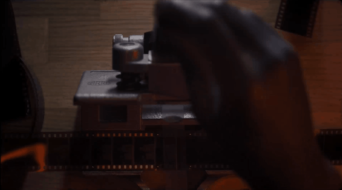 为了这些过渡,我们摧毁了几英尺的胶卷。我们尝试了多种方法来切割胶片材料,并借助高分辨率扫描仪手动制作了撕下的胶片过渡的动画。每帧都是对切割或撕下的胶片的唯一扫描。