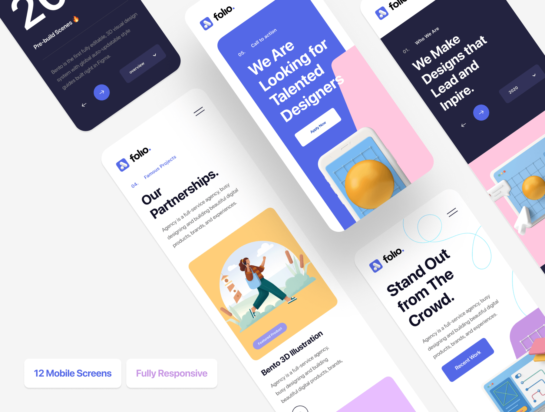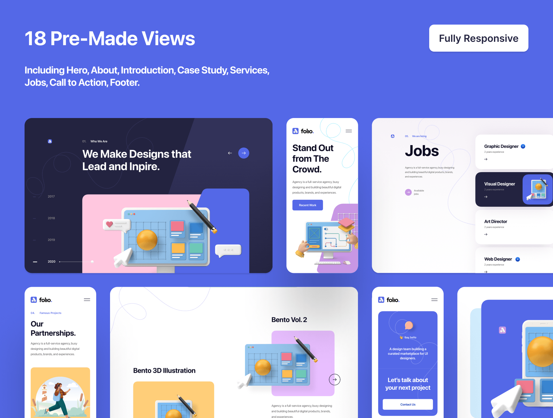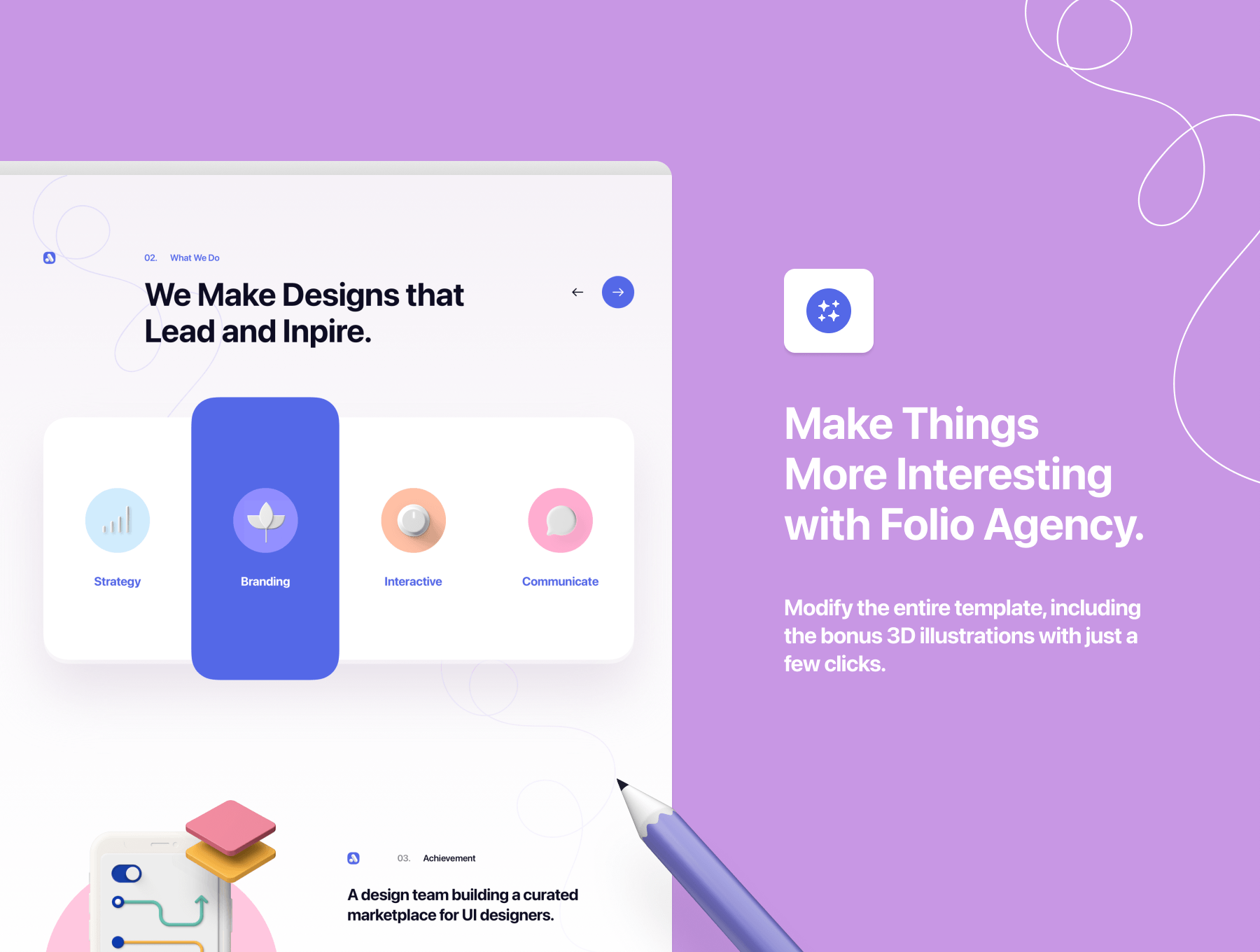 认识Folio Agency,这是功能强大的代理产品包套件,包括代码,设计文件以及可在Figma和Sketch中编辑的精美3D插图。