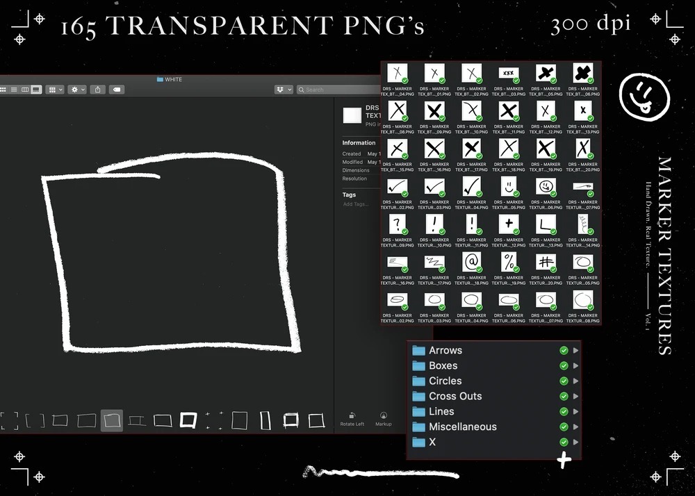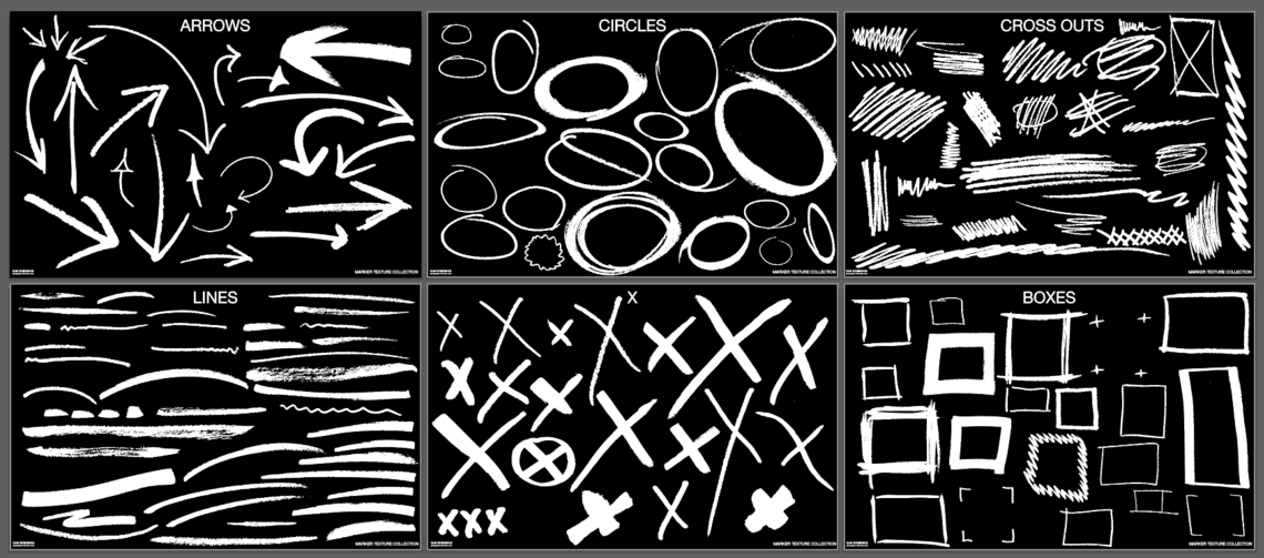 165种独特的手绘标记纹理可为数字设计和图像增添人性味。