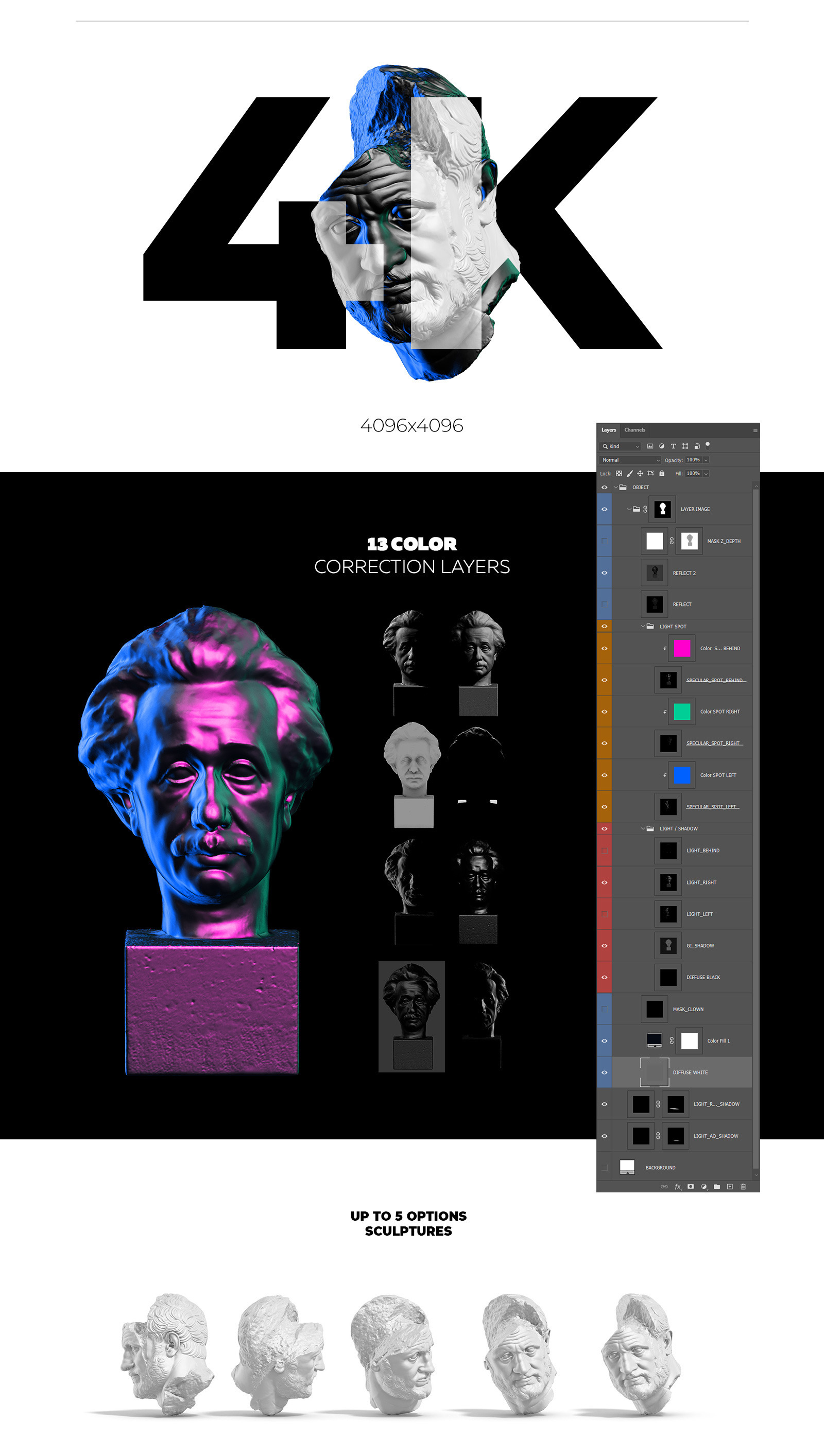 使用这些模拟雕塑来创建您自己的企业标识,应用程序,网页设计,印刷产品,纺织品。