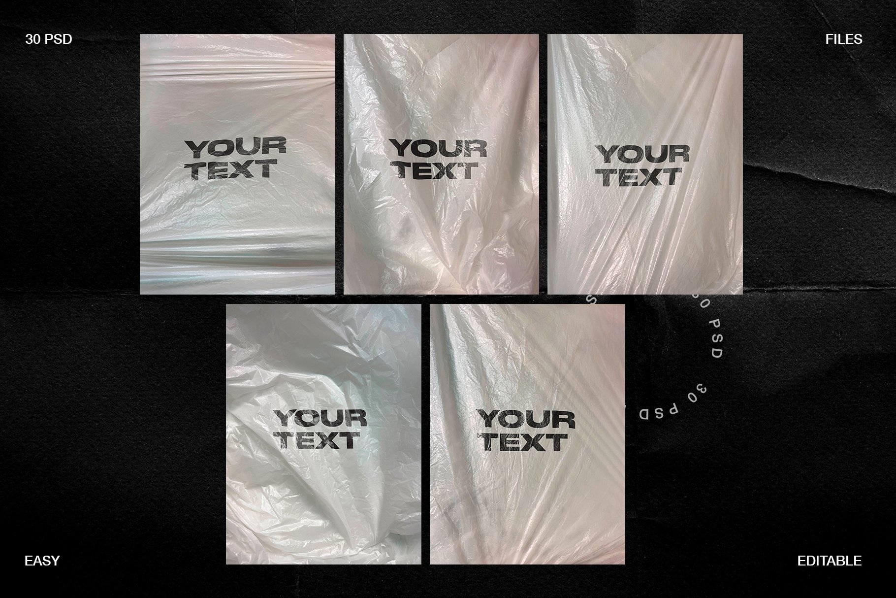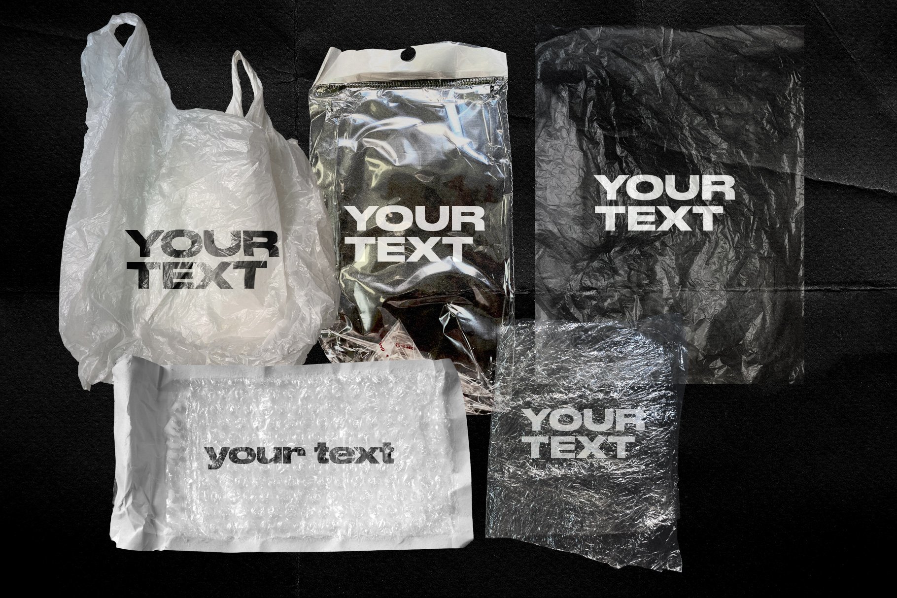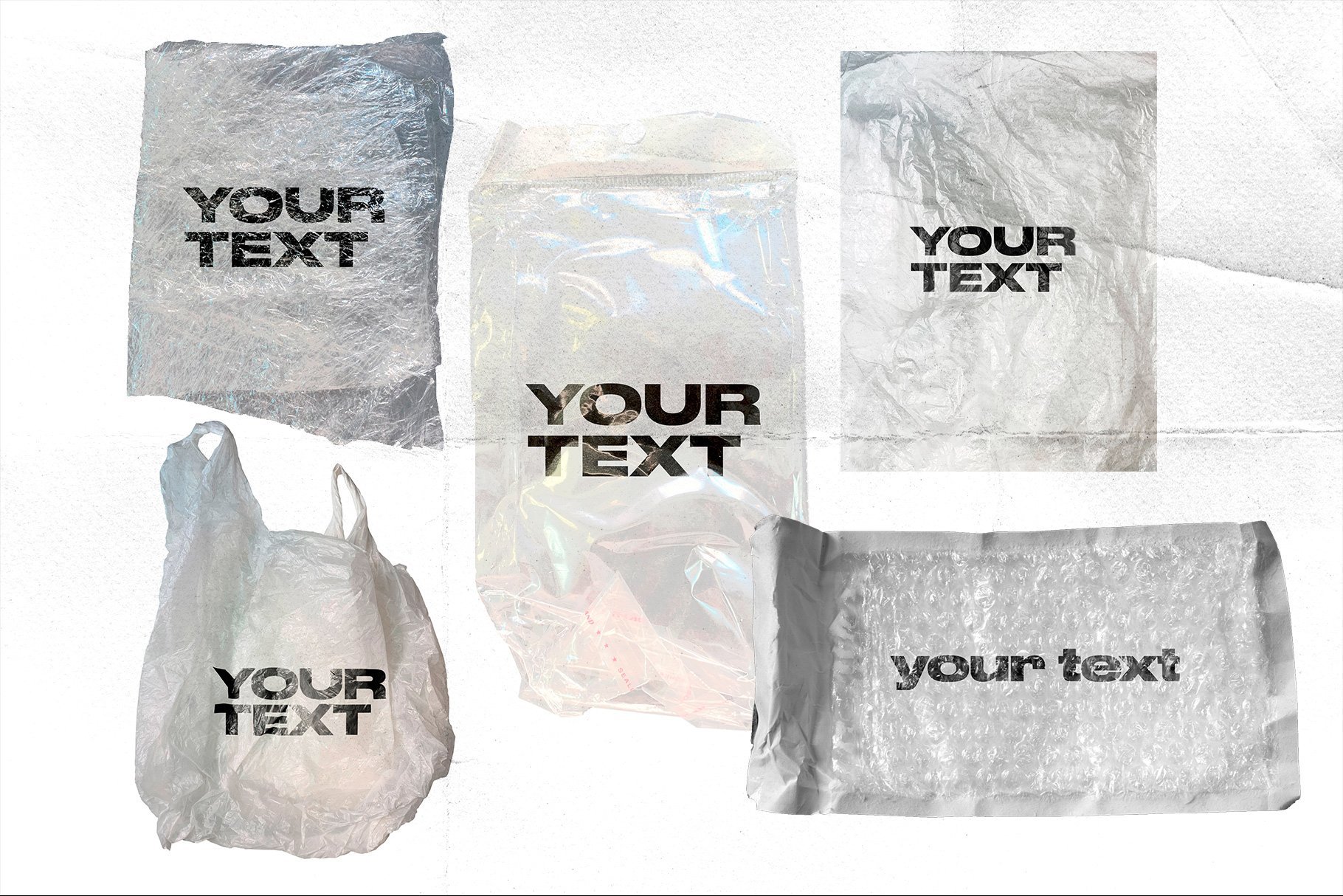 高分辨率塑料样机模板,保鲜膜纹理的独特集合,您可以在其上放置任何文本,图像,徽标等。所有纹理均基于照片,为您的设计带来自然,逼真的模拟效果。非常适合用于品牌宣传,例如您的网上商店,投资组合和社交媒体帖子。易于通过智能对象进行编辑。PSD文件由几层组成,很容易将背景更改为您喜欢的任何颜色。其中包含PDF指令文件,该文件说明了如何使用样机,并且还提供了有关如何向文本中添加一些纹理的快速提示。