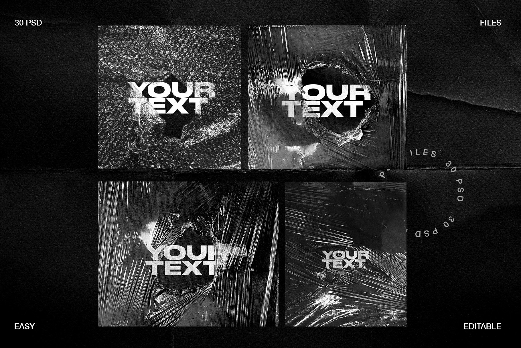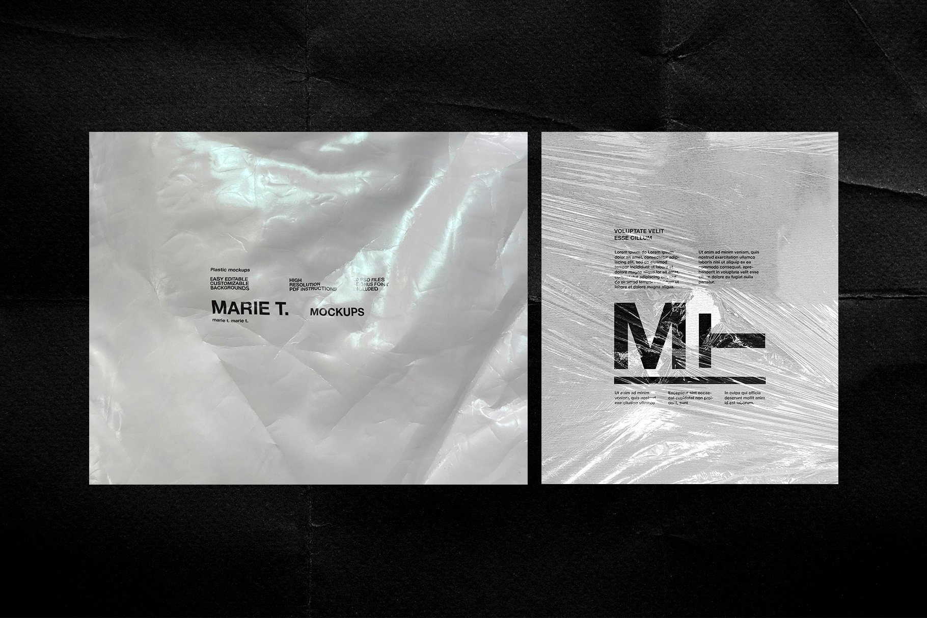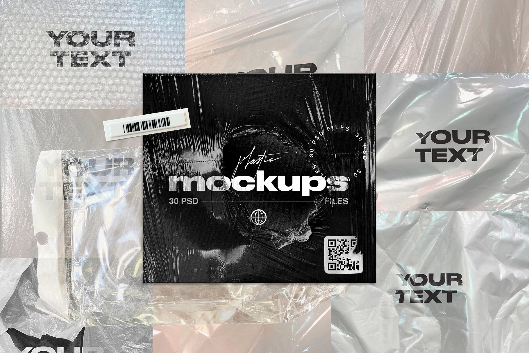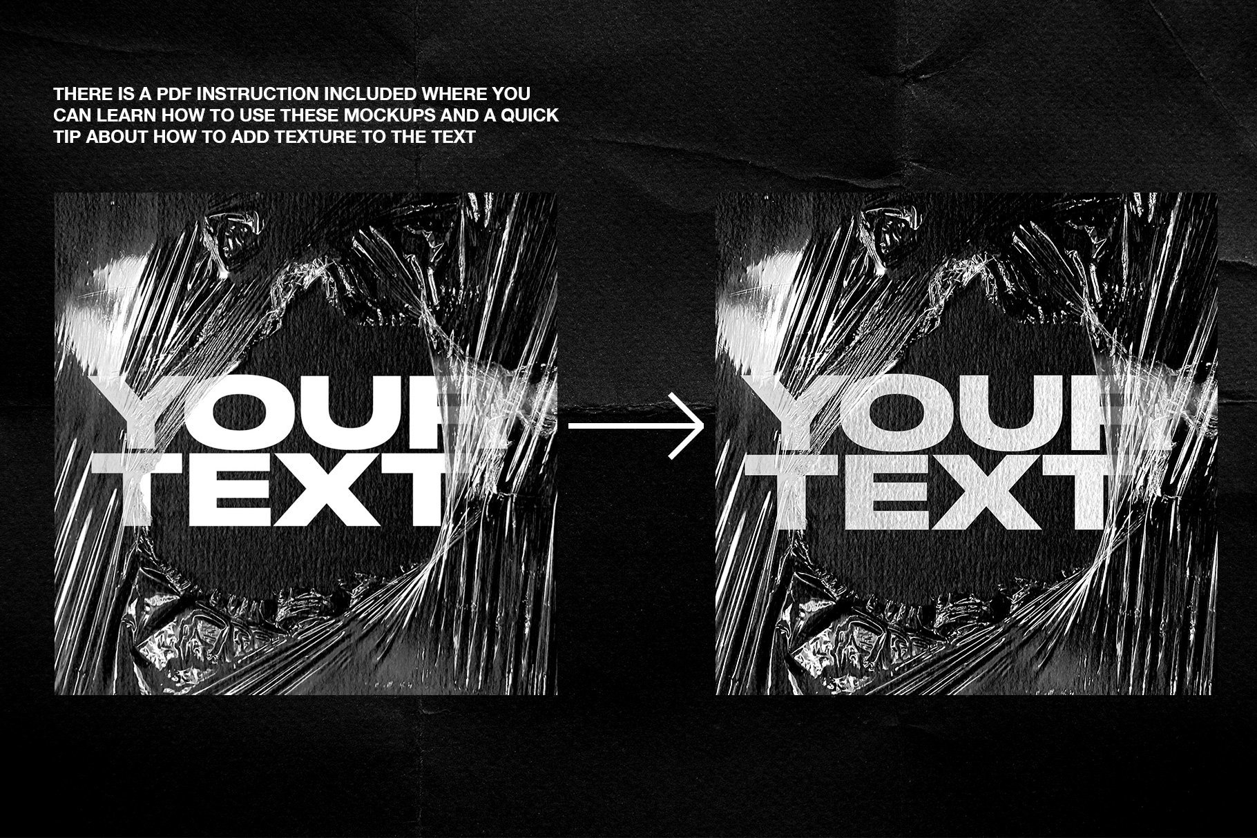 高分辨率塑料样机模板,保鲜膜纹理的独特集合,您可以在其上放置任何文本,图像,徽标等。所有纹理均基于照片,为您的设计带来自然,逼真的模拟效果。非常适合用于品牌宣传,例如您的网上商店,投资组合和社交媒体帖子。易于通过智能对象进行编辑。PSD文件由几层组成,很容易将背景更改为您喜欢的任何颜色。其中包含PDF指令文件,该文件说明了如何使用样机,并且还提供了有关如何向文本中添加一些纹理的快速提示。