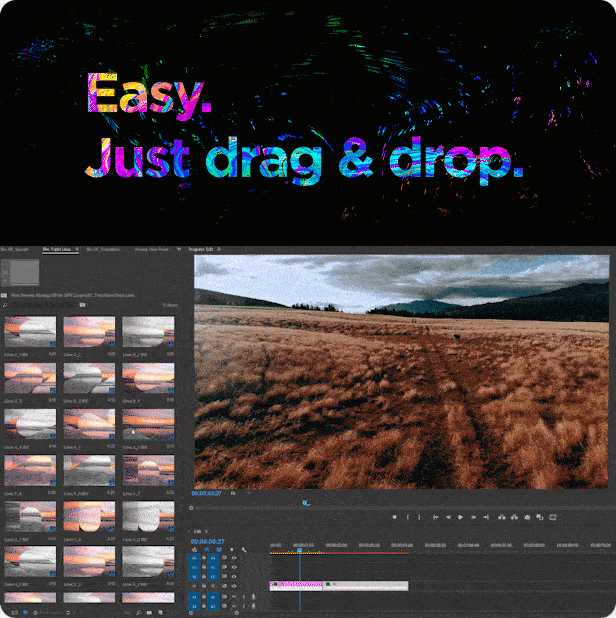FX Bundle不是MOGRT产品-您需要的只是Premiere Pro。不需要Adobe After Effects或其他插件