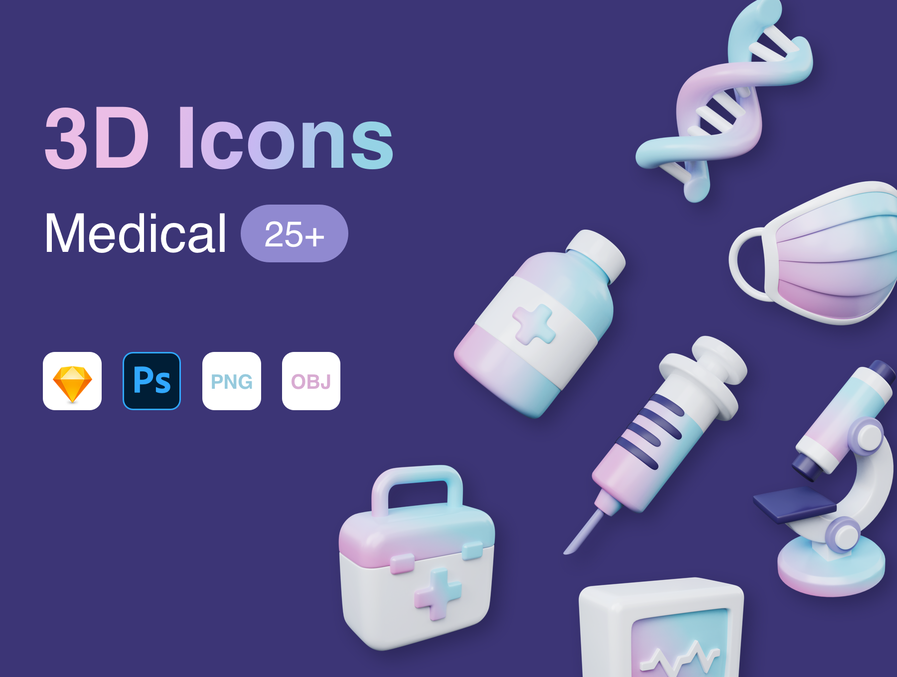 25多种医疗图标和元素,可为您的着陆页,网站,移动应用,演示文稿等创建引人入胜的作品。