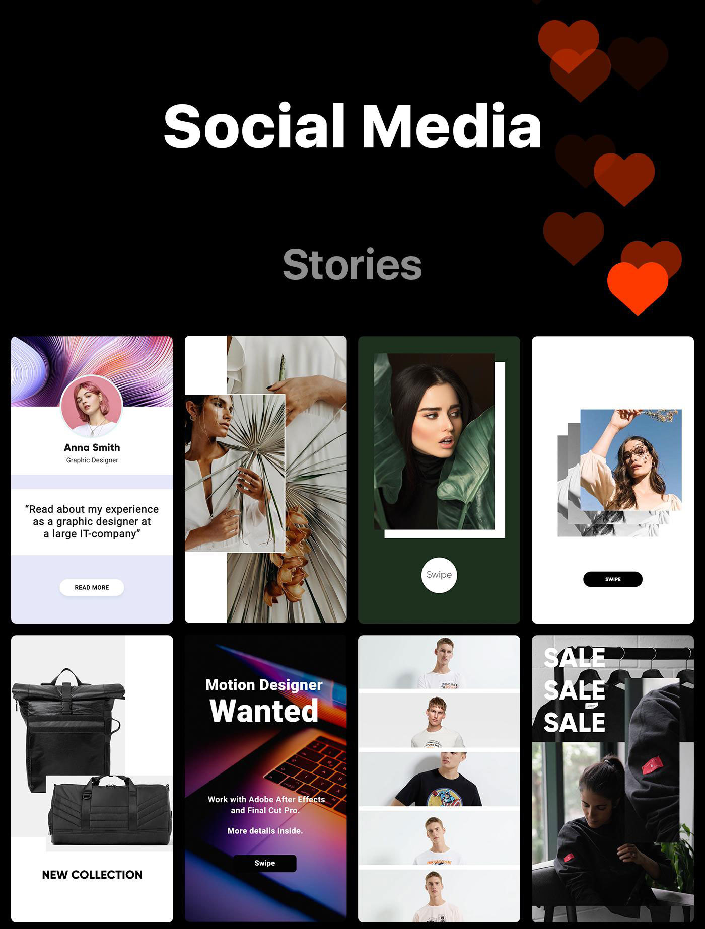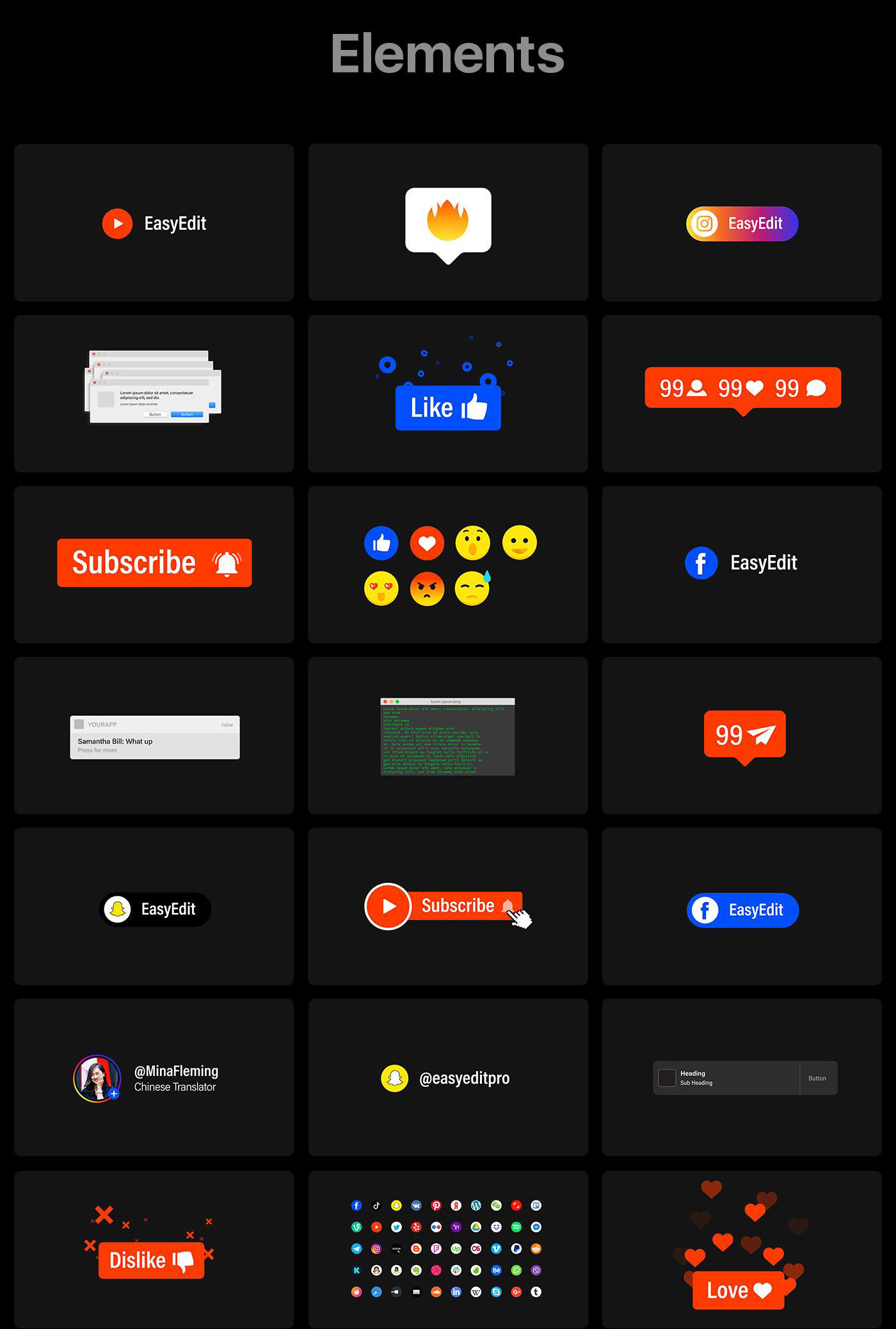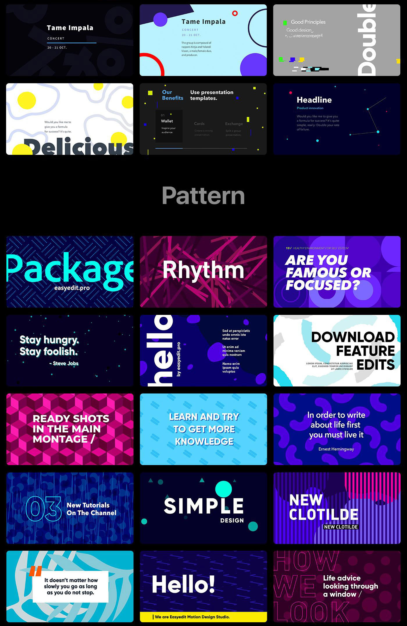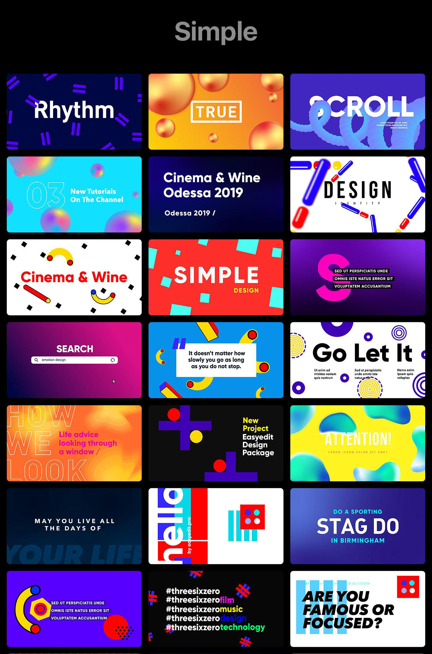 非常适合youtube和Instagram照片和视频! 结合排版与渐变和图案,添加不同的图形元素或使您的设计。准备使用模板,让视频爆炸。 因此,别忘了再做一件事!使用⚡️ EasyEdit查看器⚡️你可以找到,预览和导入项目中的任何成分只是几秒钟。主要特点