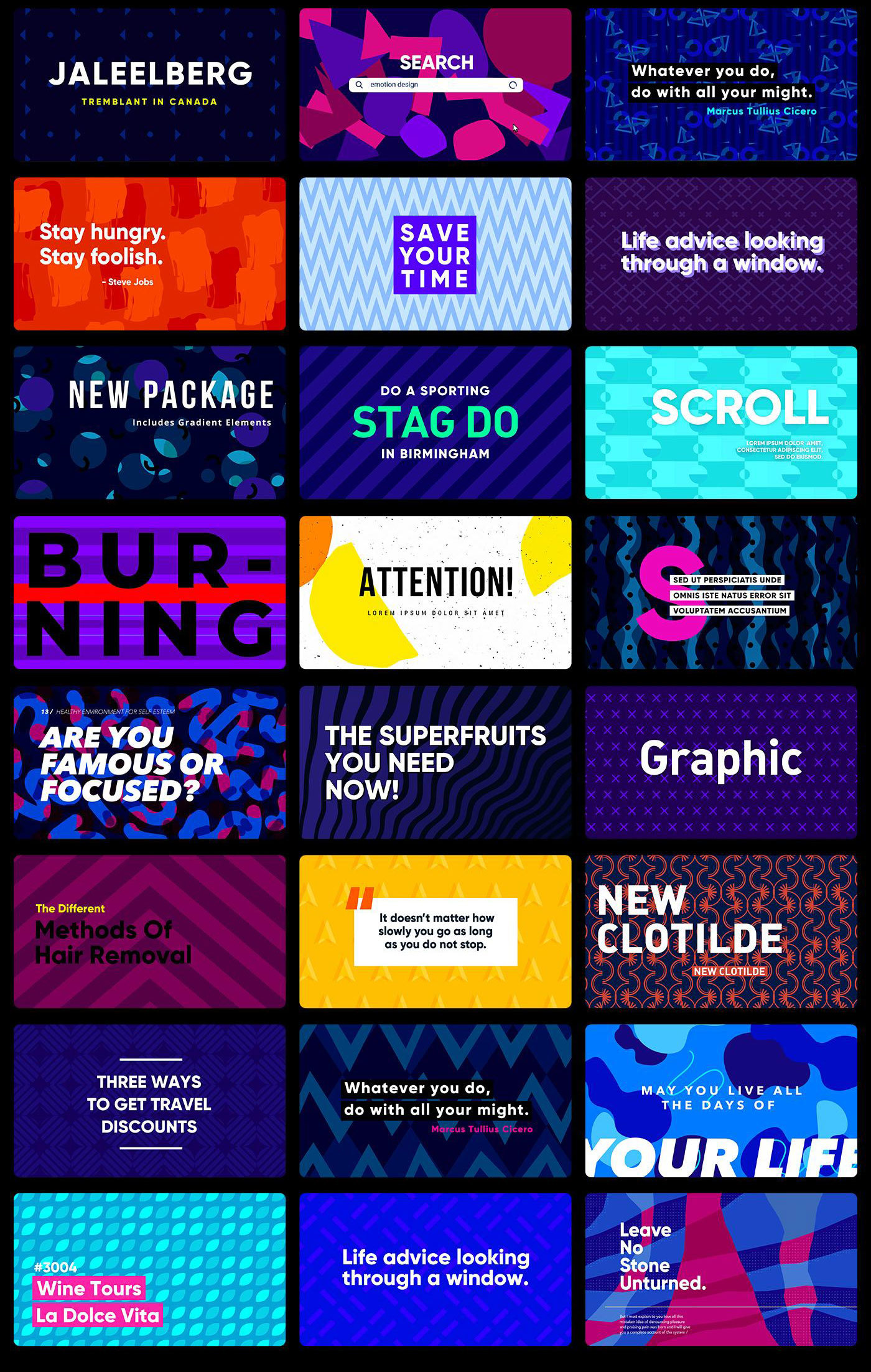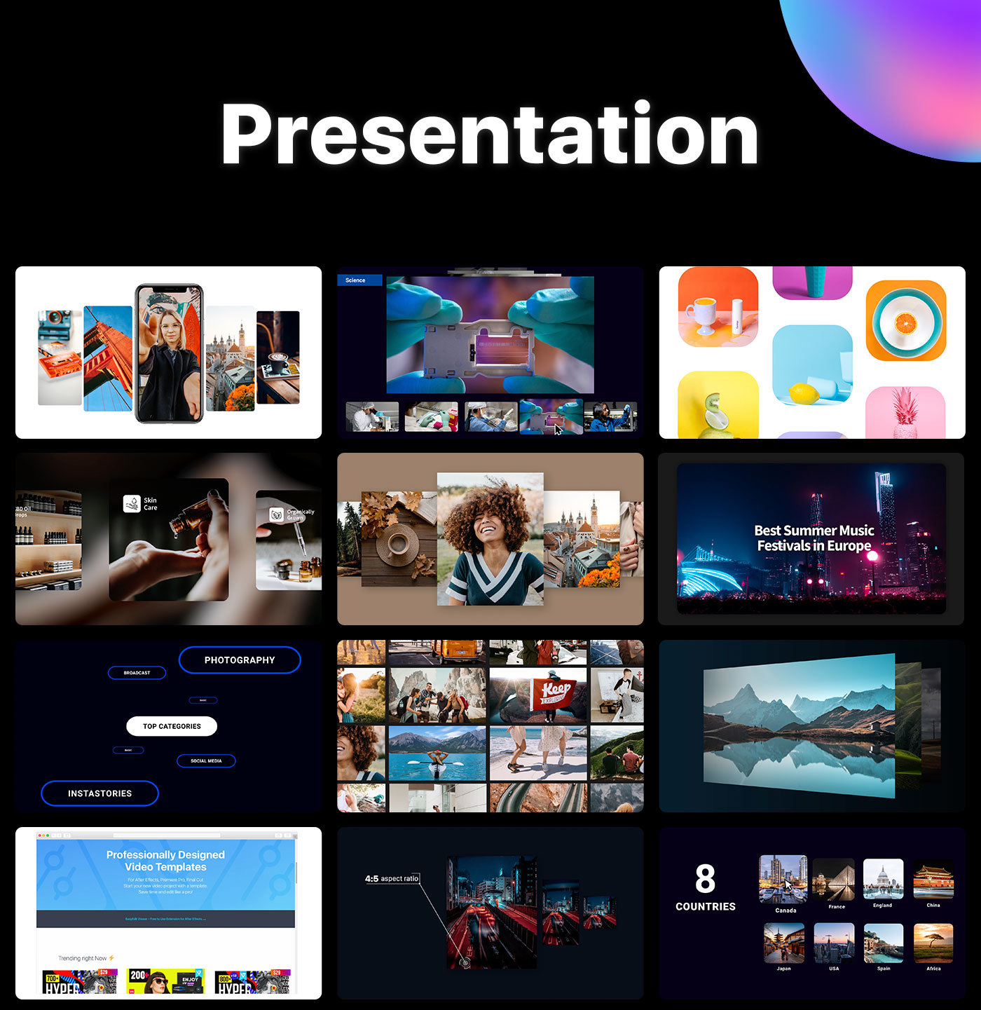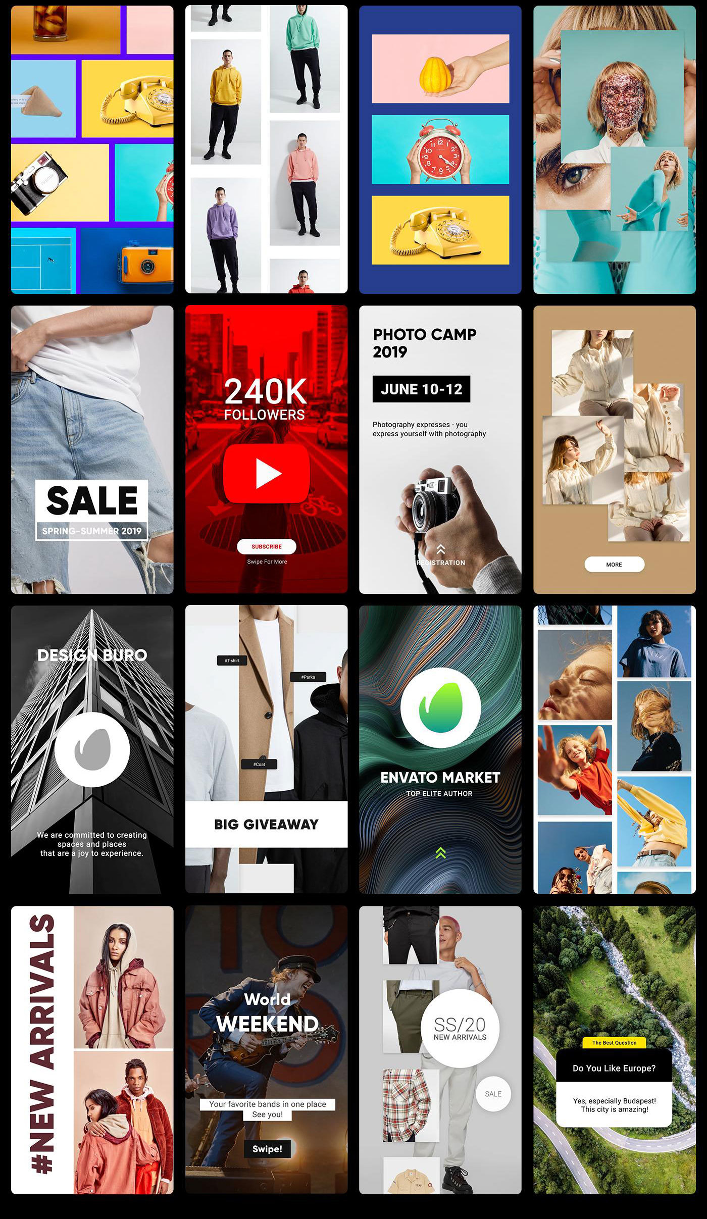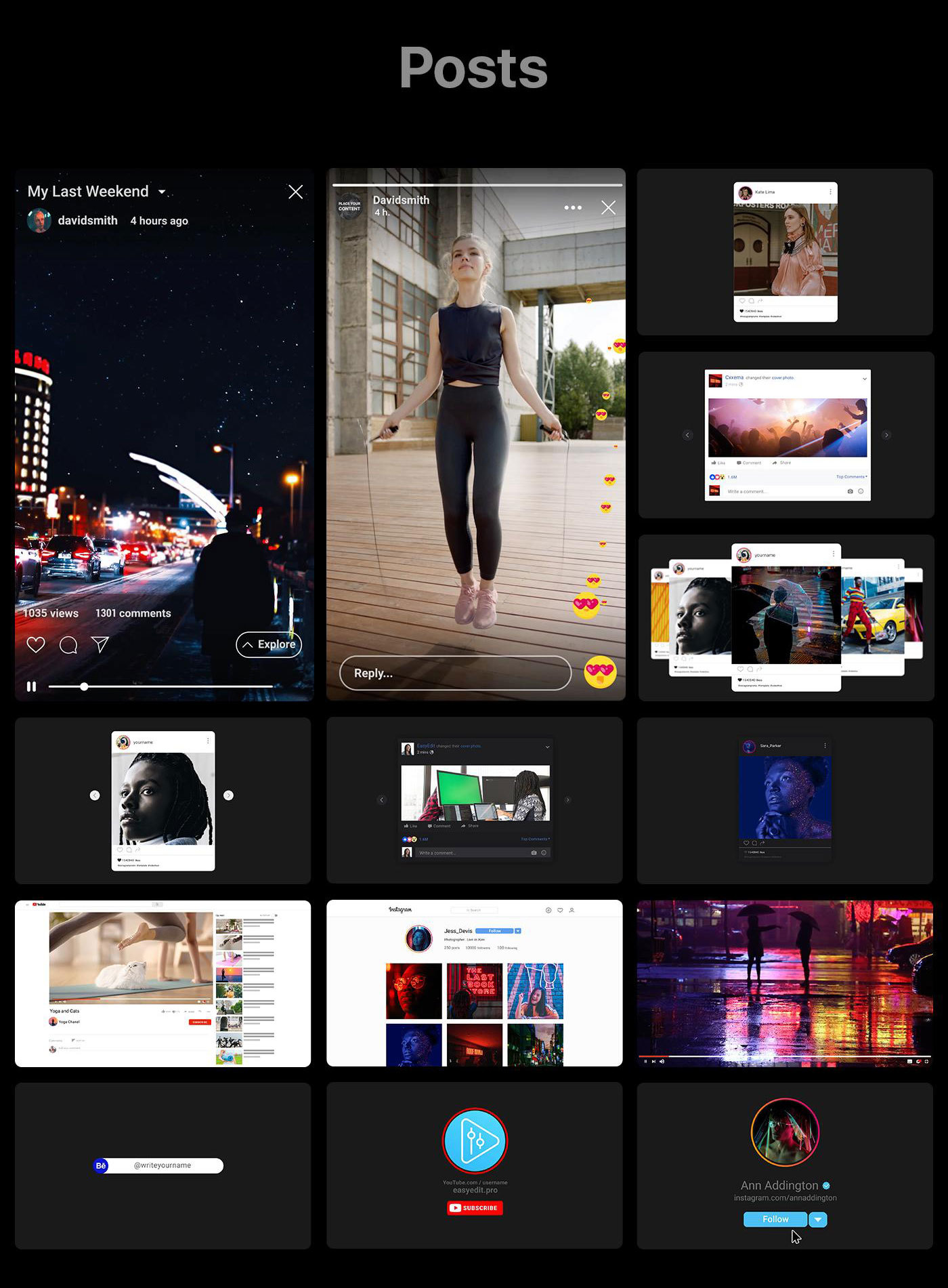 非常适合youtube和Instagram照片和视频! 结合排版与渐变和图案,添加不同的图形元素或使您的设计。准备使用模板,让视频爆炸。 因此,别忘了再做一件事!使用⚡️ EasyEdit查看器⚡️你可以找到,预览和导入项目中的任何成分只是几秒钟。主要特点