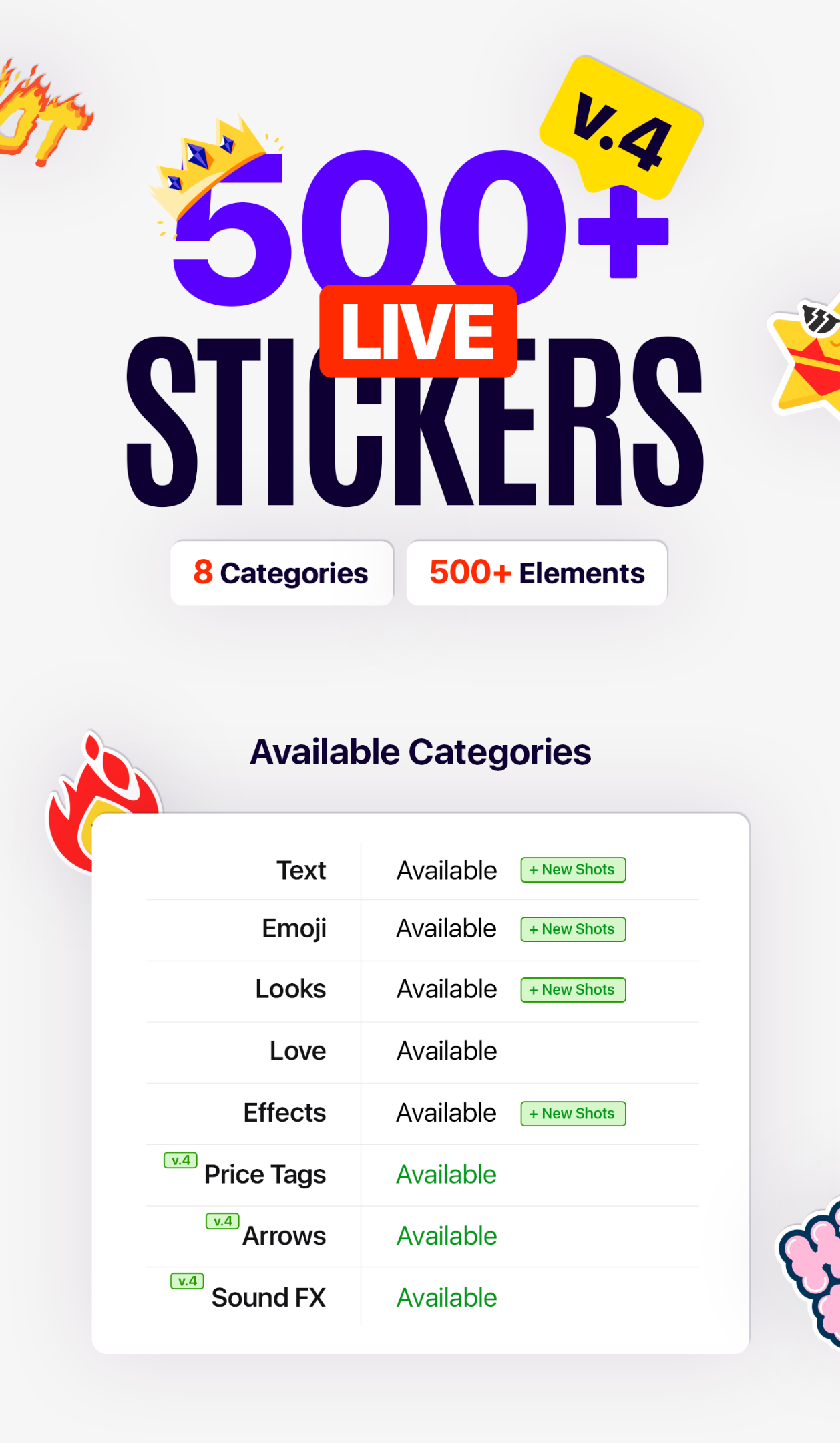 文字作文类别包括时尚的印刷贴纸。效果类别包括各种动画全屏帧,例如inststories以及最酷的Flash效果。