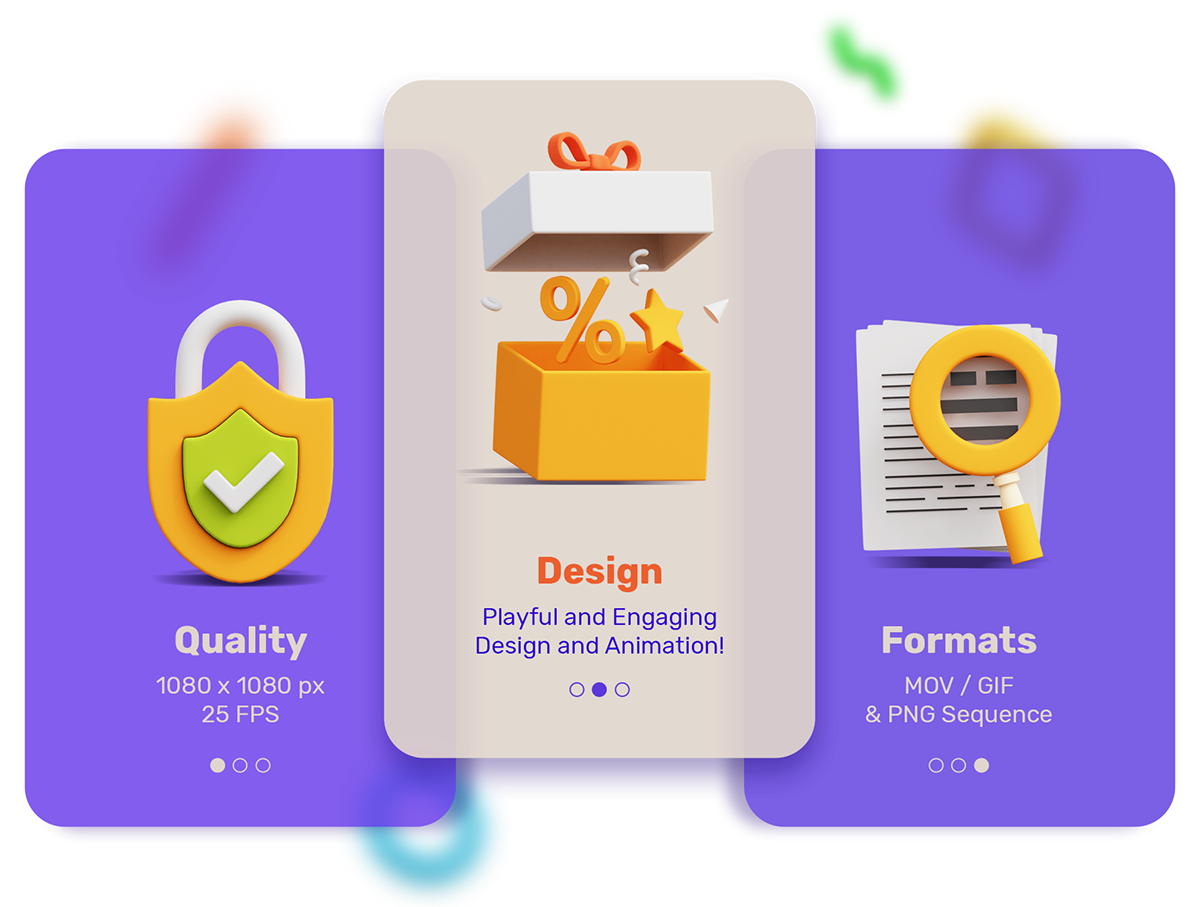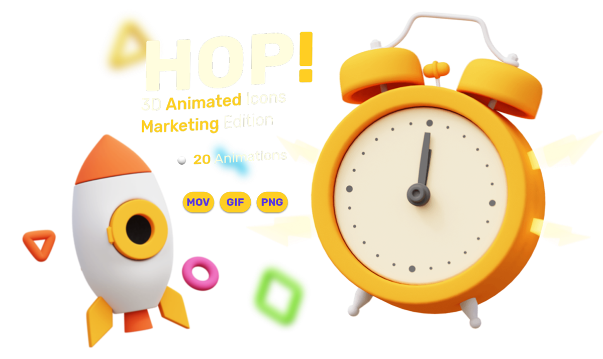 该包包括总共20个精美生动的动画图标。提供3种不同格式:视频文件MOV / PNG序列(1080 x 1080p)和GIF(400 x 400p)