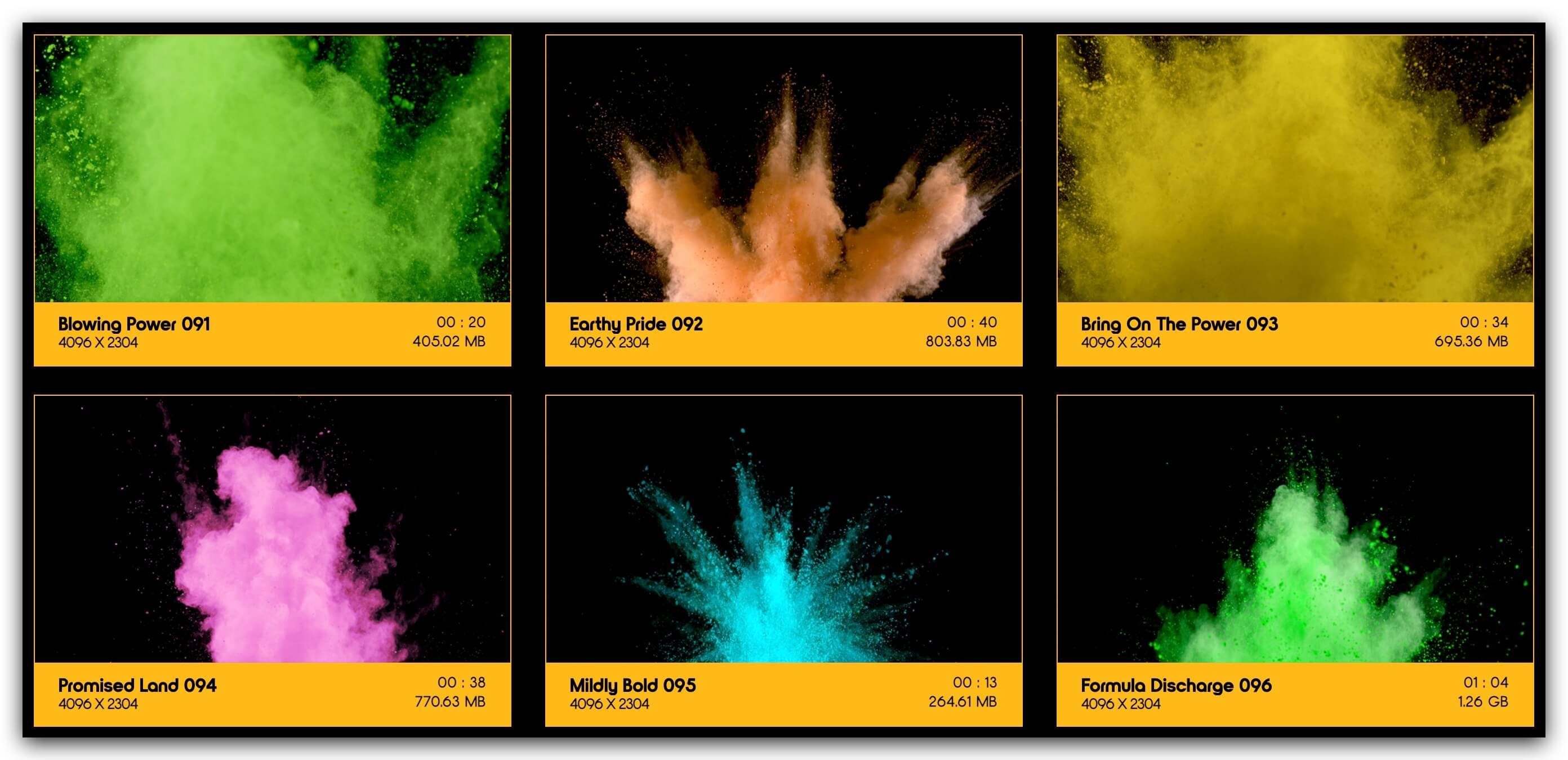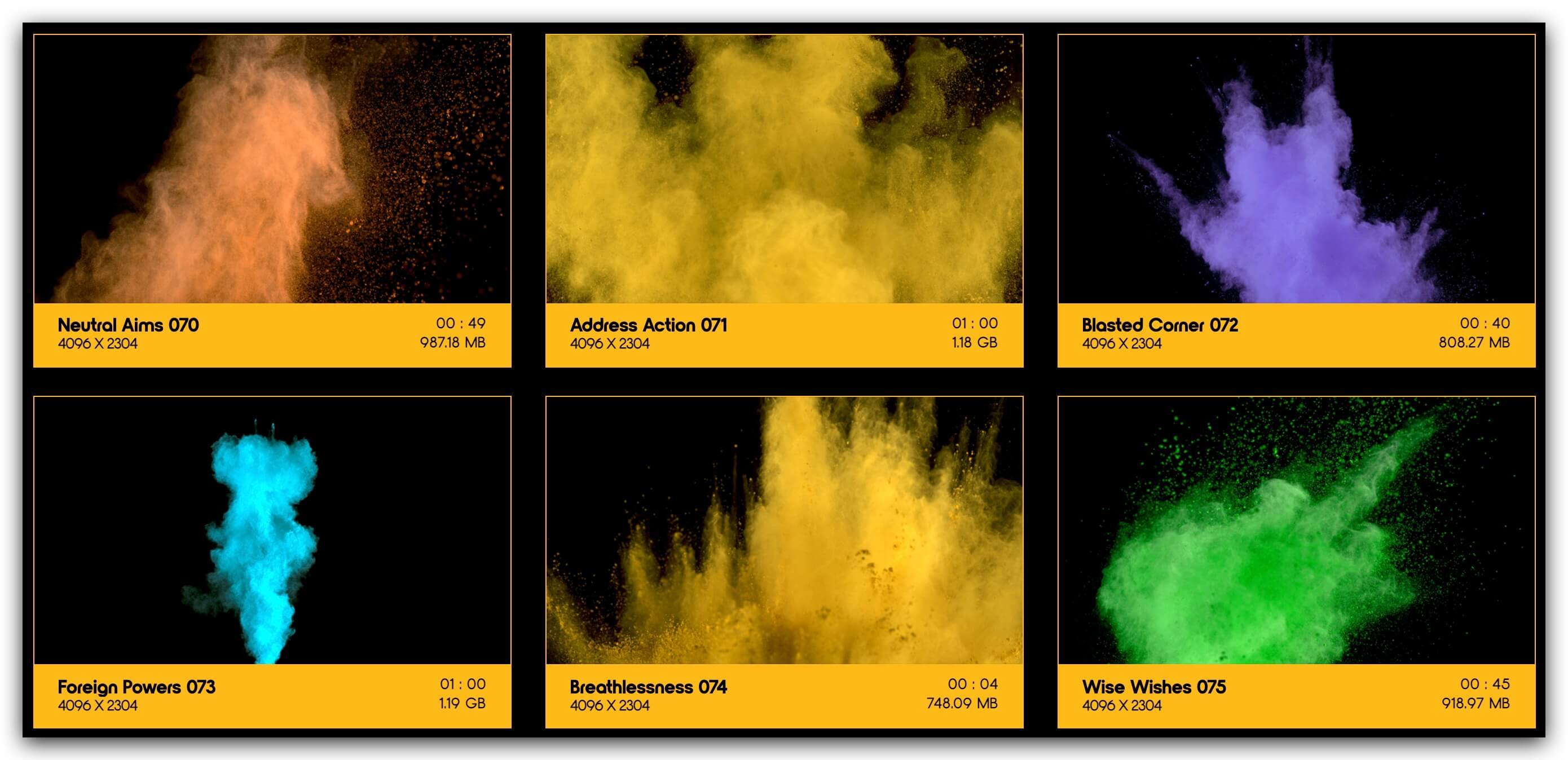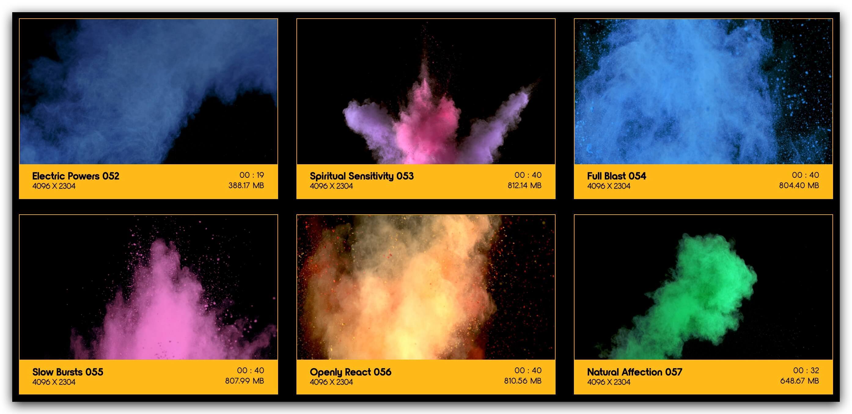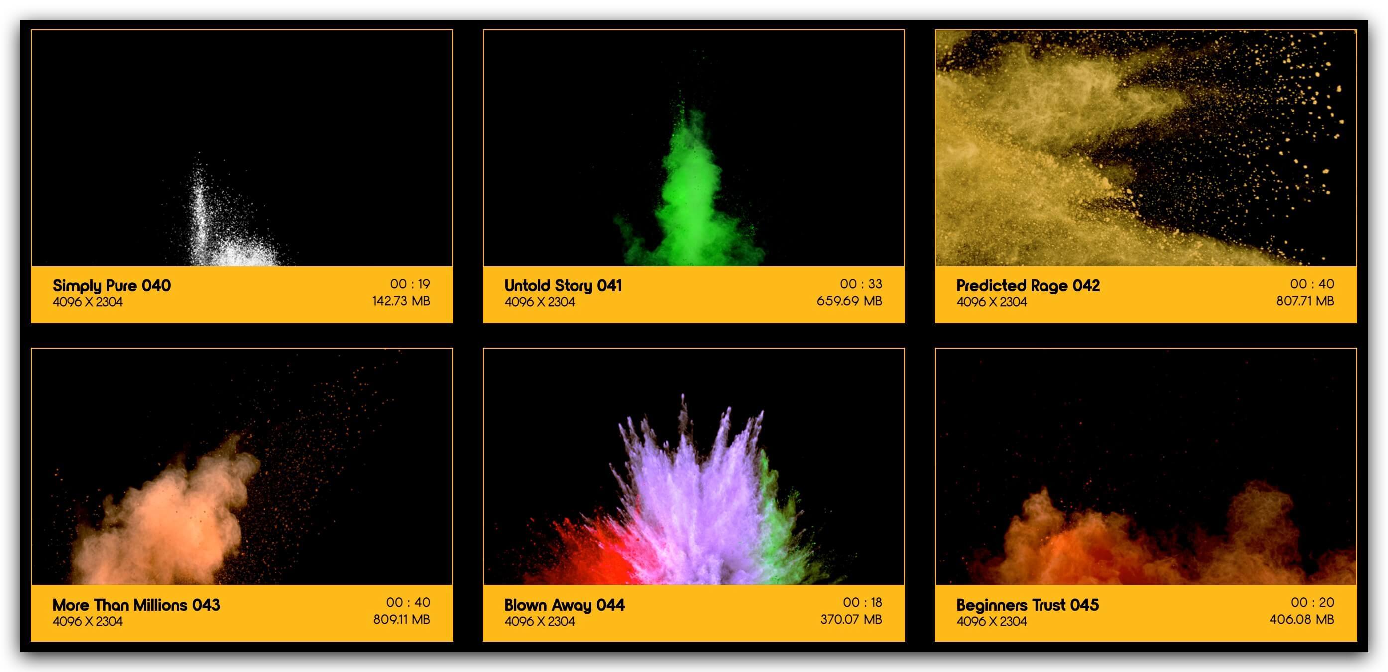 4K视频素材 130个缤纷炫彩粉末爆炸喷洒飞溅特效合成动画 这是一套慢动作炫彩粉末爆炸效果的特效合成素材,4K分辨率,适用于各类的特效合成、转场及背景素材使用,收藏备用!
