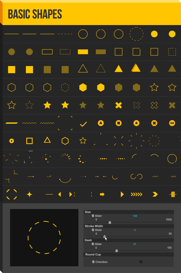 图形动画:100个基本图形+50个线条图形+50个爆炸线条+50个粒子图形+50个混合图形+70个手势动画+25个圣诞节图形