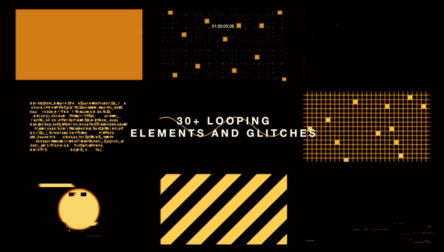 包含33个单个元素视频素材(可无限循环)+10个组合复合元素视频素材,4K高清分辨率,MOV格式,不包含透明通道,视频混合模式改成滤色(屏幕/Screen)即可去黑底,使用十分简单