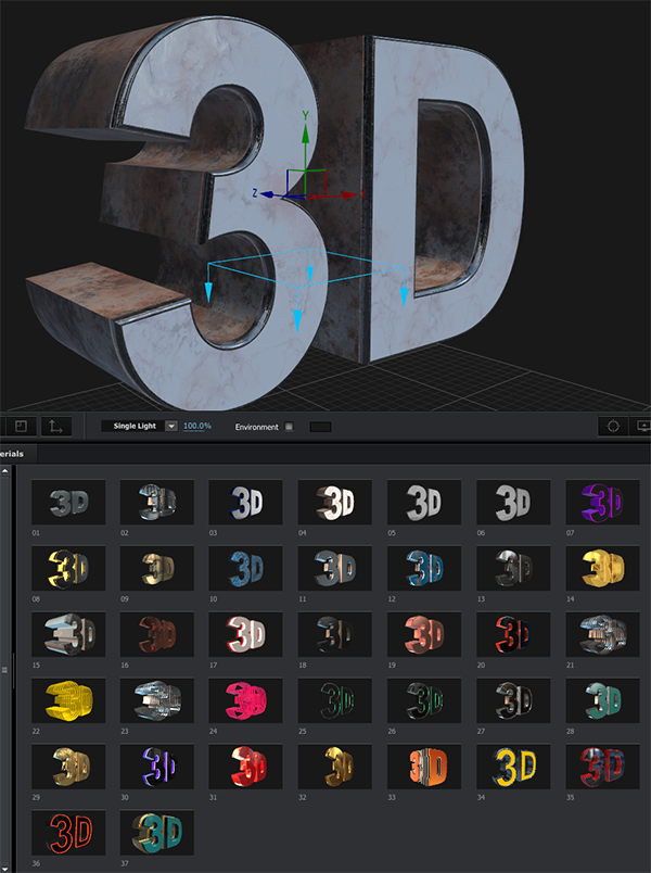 Element 3D v.2的材质和倒角预设。有趣,快速和容易。简单的拖放!替换为文本/徽标,或创建自己的场景,像pro一样对3D对象进行纹理处理!