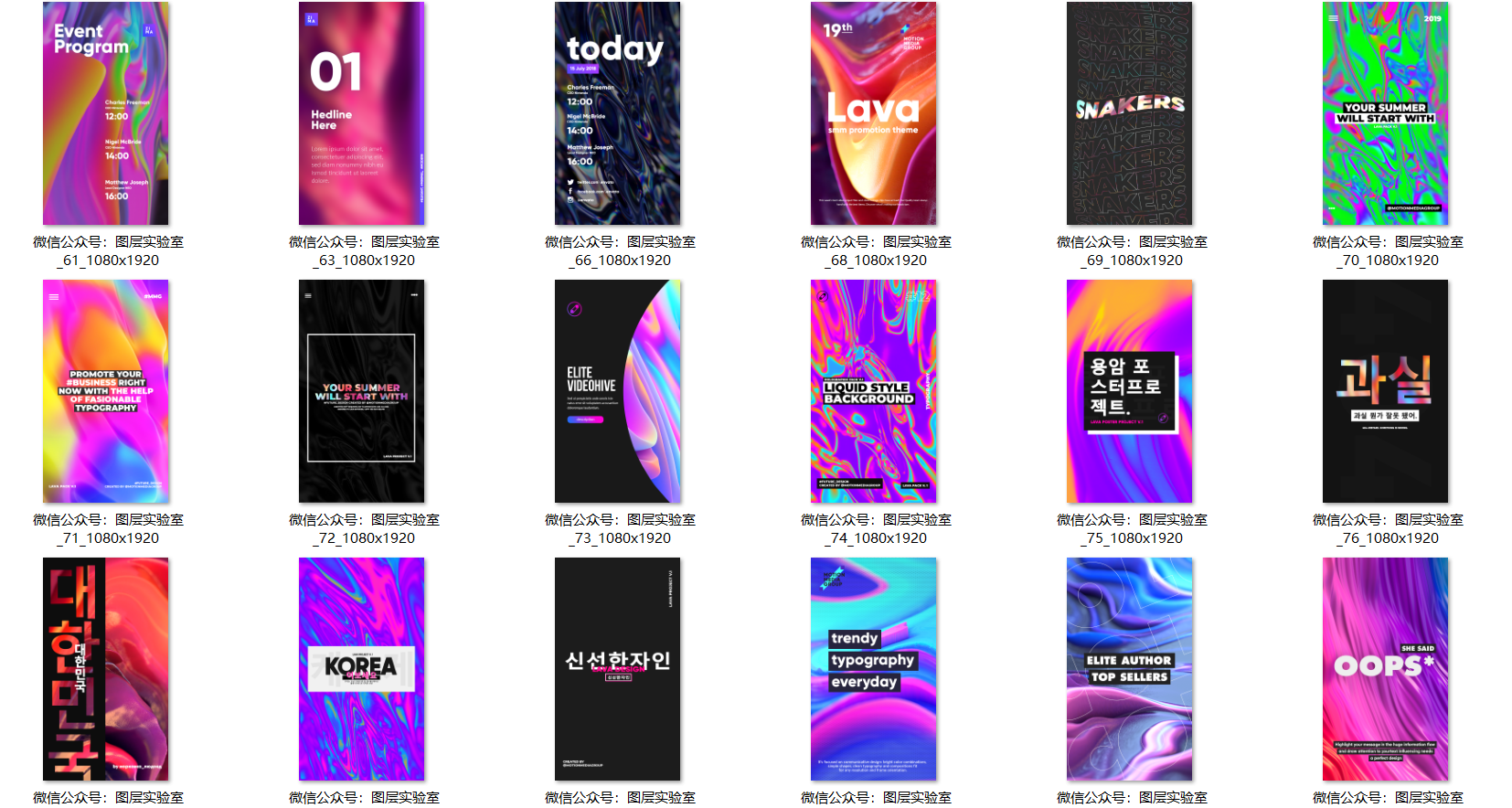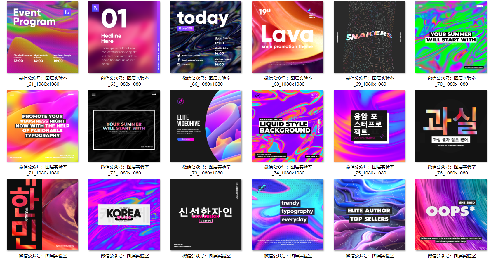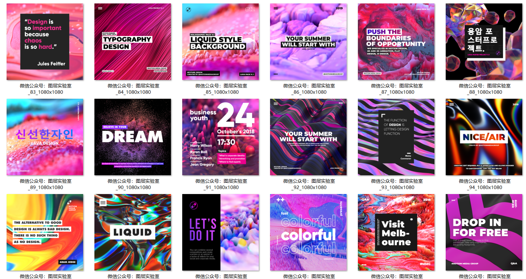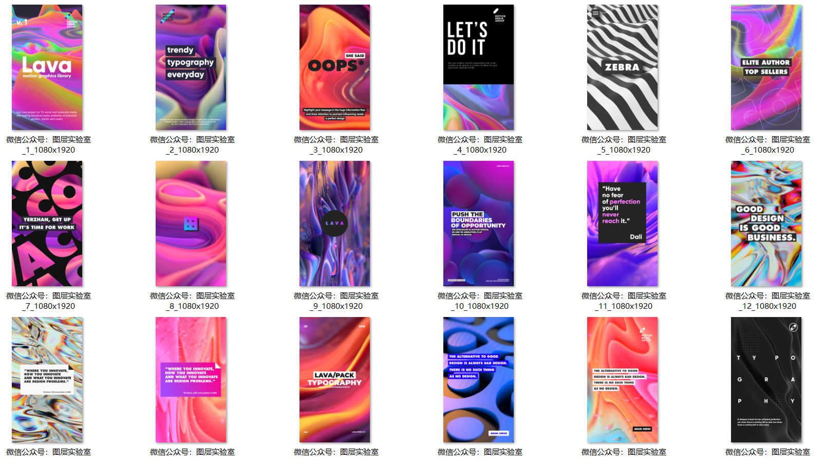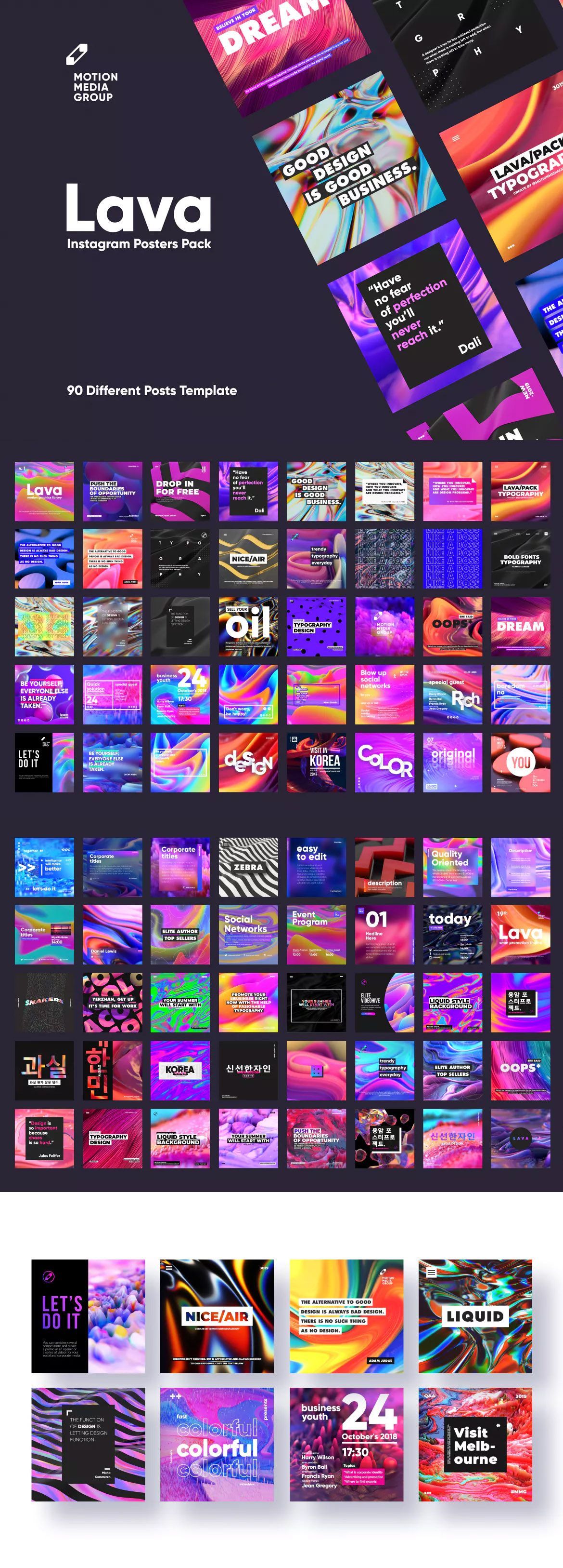 熔岩海报是用于电视,社交和企业媒体的大型熔岩运动图形库的一部分。90种不同帖子PSD模板,有机物和微粒启发的全息,几何,黑白样式,非常适合明亮的排版,易于品牌和定制。