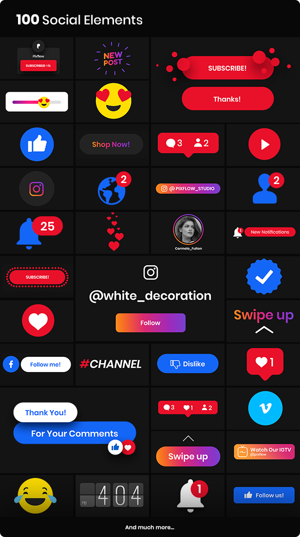 - 增加的元素比如旗帜、图标动画、笔刷动画、对话框气泡、文字标题、社交包装等