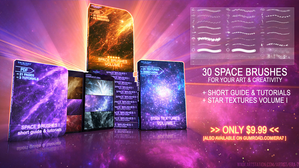 -30个用于Photoshop的空间画笔(.ABR格式)。需要Photoshop CC及更高版本。