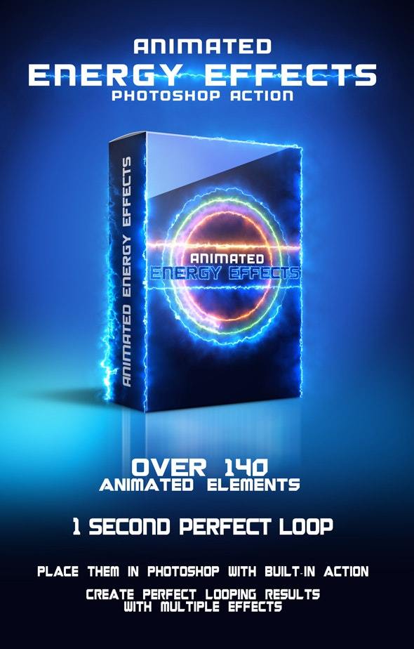 动画能量效果Photoshop Action是一个软件包,其中包含140多种动画能量效果和一个Photoshop动作,可以非常轻松地将它们放置在图像上。能量效果完美地循环(持续1秒),并具有各种颜色,大小和形状,线性,非线性和圆形。使用内置的PS动作,您可以非常轻松地在照片上放置任意数量的动画元素,并创建循环1秒的动画,这些动画可以导出为动画GIF或视频。