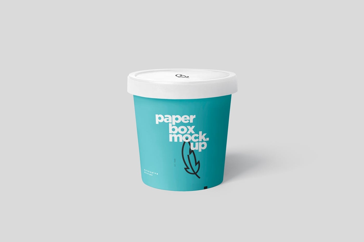 - 略微向上倾斜的具有圆形顶部和底部的纸盒样机镜头。