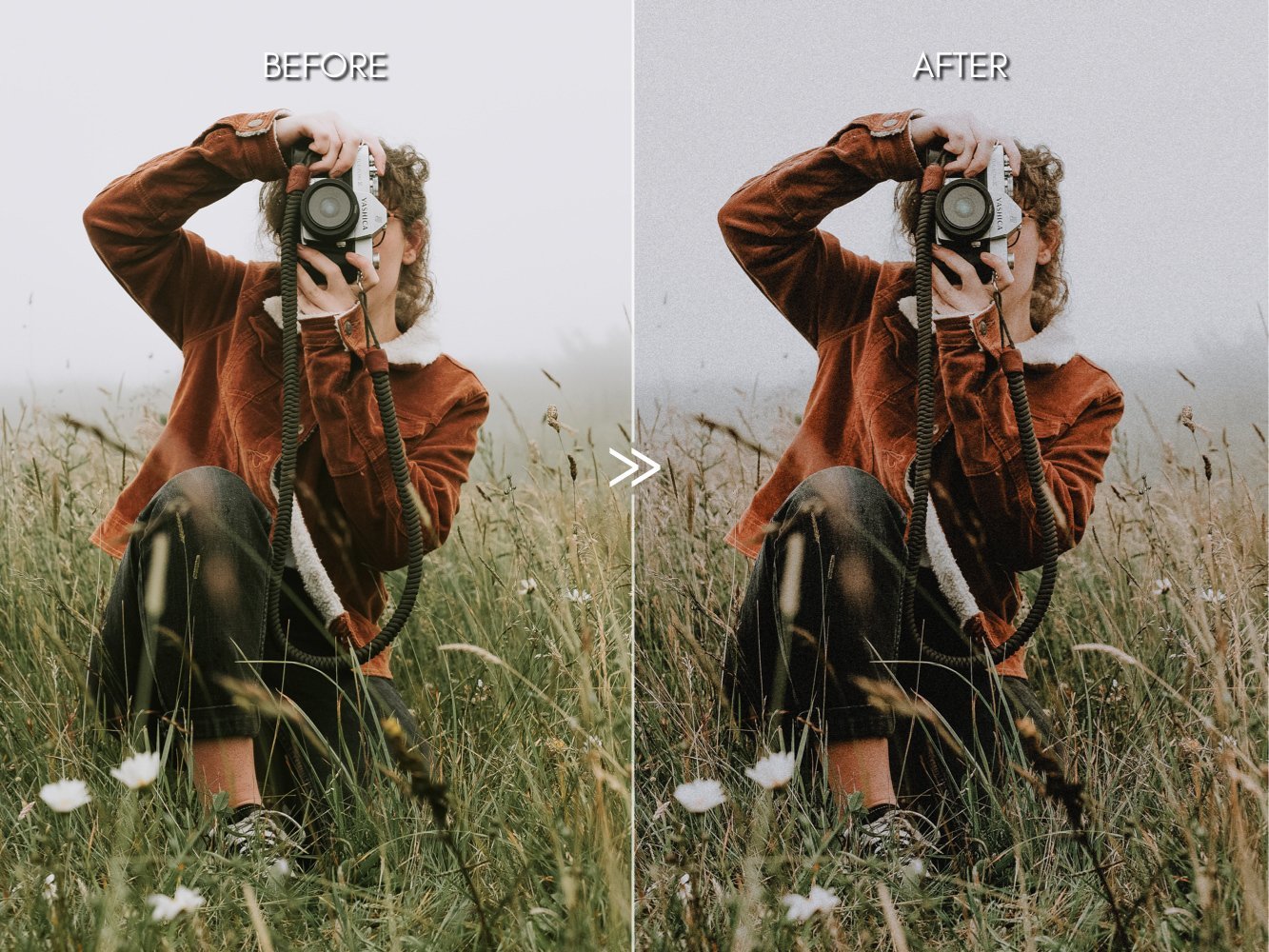 Retro Film预设包具有丰富的美学色彩和令人惊叹的喜怒无常的色调。这些预设功能超级通用,可广泛用于人物,风景甚至宠物!这些预设增加了颗粒感,可以复制真实电影的外观。
