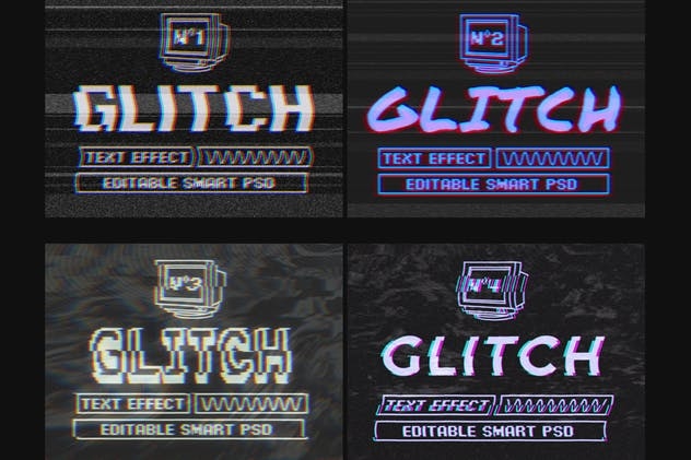 这些模板是完全可编辑和分层的 – 这意味着所有图层都被命名和排列,以便于编辑。您可以编辑电视静态和扫描线纹理,更改背景颜色或添加自己的图片作为背景,修改效果的色调和饱和度,当然也可以用自己的文本替换文本。