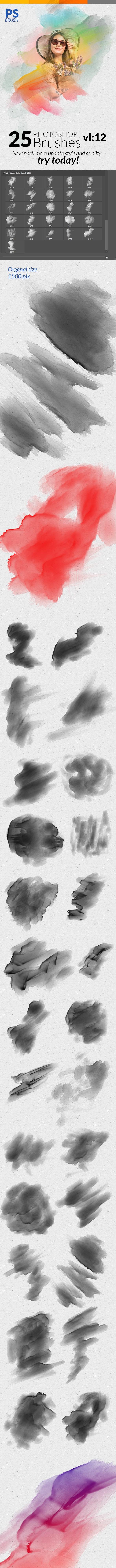 包装内含25支高质量手绘水彩水洗PS刷,1700像素200 DPI,可在几秒钟内创建专业的图形效果!